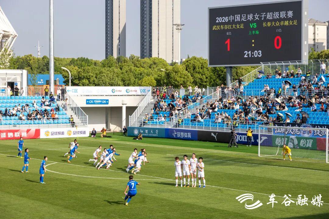 车谷融媒4月26日讯 4月25日,武汉车谷江大女足在武汉体育中心合和足球场主场迎战长春大众卓越女足,打响2026女超联赛(武汉赛区)揭幕战。经过90分钟鏖战,武汉车谷江大女足2:0战胜长春大众卓越女足,赢得首战胜利。赛前,武汉车谷江大女足新主场合和足球场揭牌。