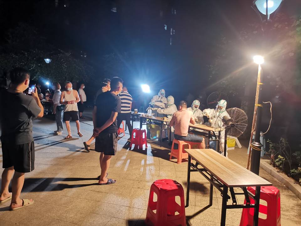 从8月4日起,沌阳社区卫生服务中心连续安排12人到军山工地和沌口工地进行采样,共完成采集1823人。检验人员邵明霞带头前往,连续两天都是从晚上8点一直工作到次日凌晨5点。