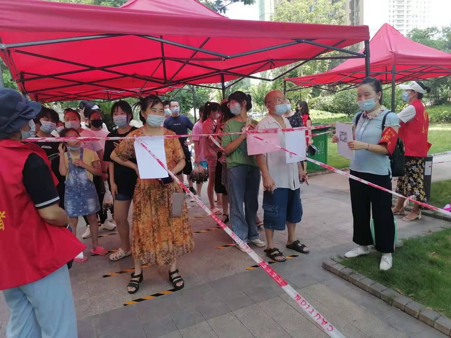 在金域蓝湾社区3号门岗,下沉党员们不惧三伏天的炎热,在室外对进出社区的居民进行严格的证件检查,确保外出居民的核酸检测已经完成,他们努力践行“快、狠、严、扩、足”的工作要求,把志愿服务做实,守护社区第一防线。进出的居民纷纷感叹:“就应该像你们这样的严格管理,你们辛苦了!”