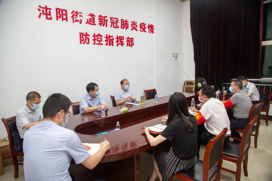 在沌阳街新冠肺炎疫情防控指挥部,刘子清听取街道疫情防控工作情况,协调解决相关问题,并就严格做好疫情防控、加强重点人员排查管控、统筹做好企业防疫生产、居民生活保供等工作提出要求。