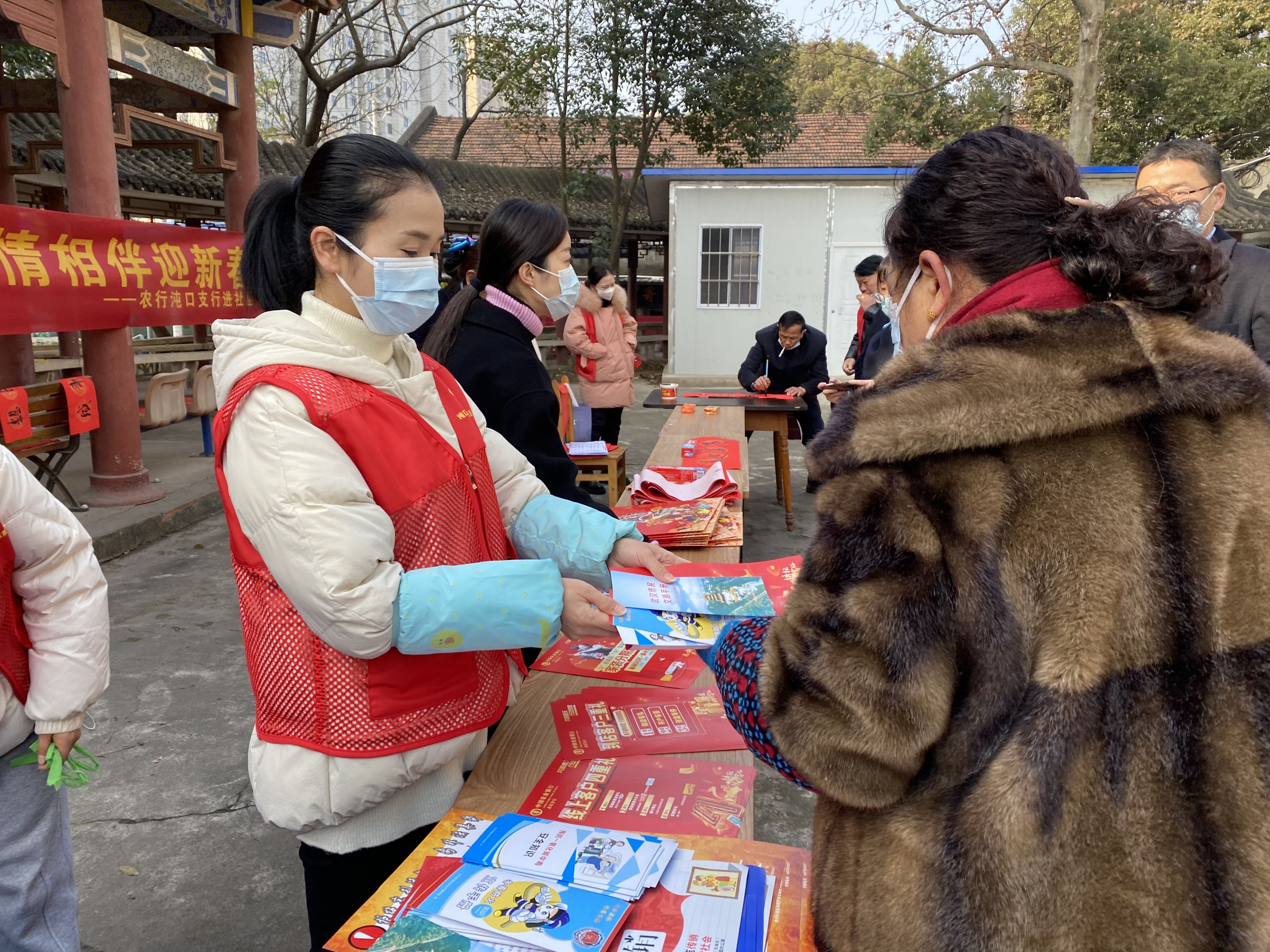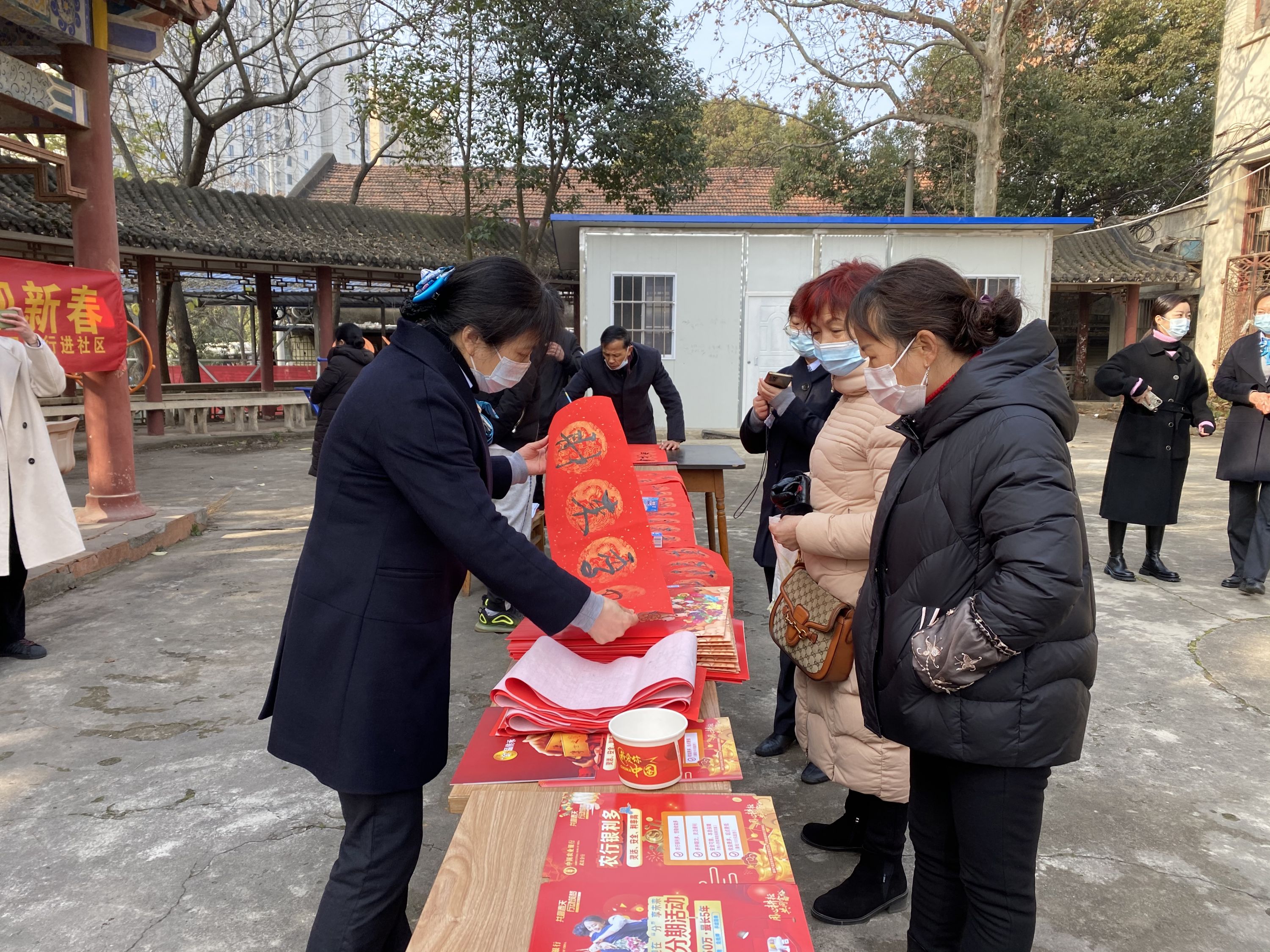 为丰富居民生活,营造温馨祥和的节日气氛,1月13日,东荆社区联合农业银行沌口支行在社区文化广场开展“金融服务进社区 浓情相伴迎新春”新春送福活动,把书法老师请进社区,为居民书写春联,将浓浓的年味浓缩于一笔一画之间,极大提升了居民满足感。