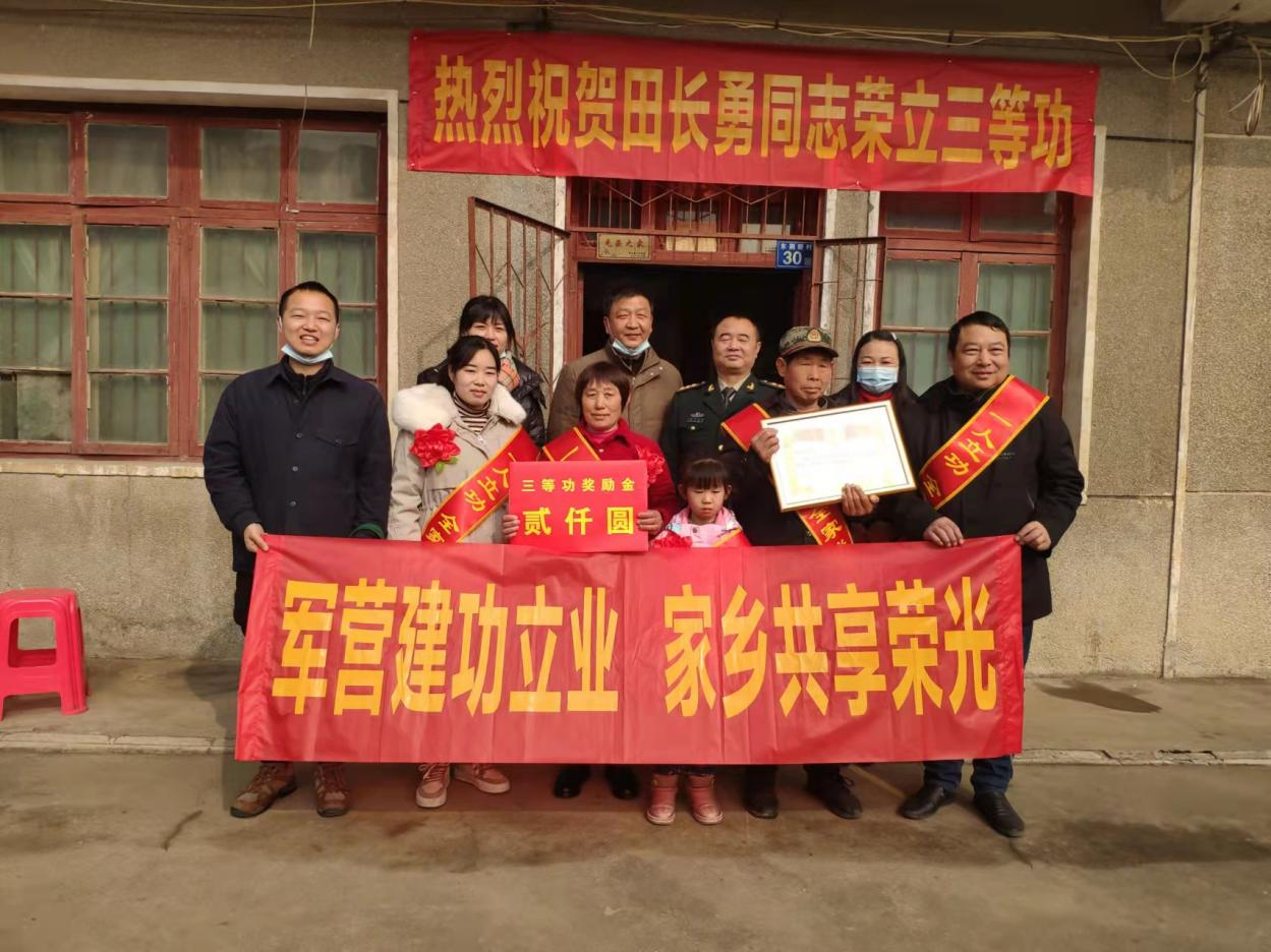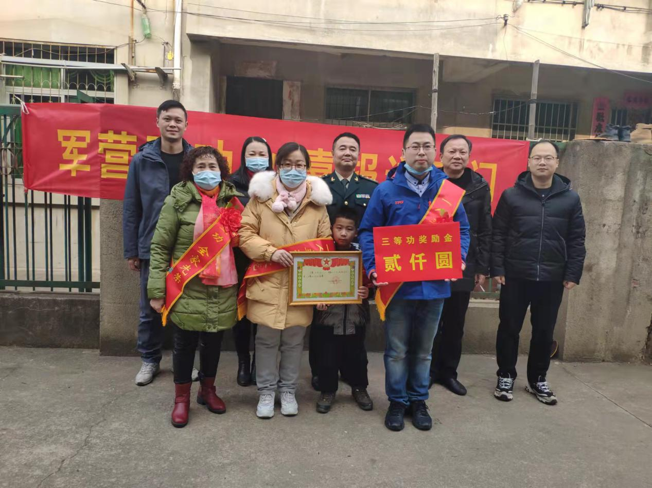 一人立功,全家光荣。慰问组一行先后走进胡锐灵、肖攀、熊航、田长勇4名优秀军人家中,为军属佩戴好红花绶带,送上三等功喜报和奖励金,向获得荣誉的军属表示热烈的祝贺并致以新春的问候。
