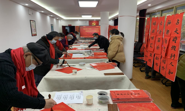 车谷融媒1月26日讯 “虎跃龙腾生紫气,风调雨顺兆丰年。”1月24日下午,“我们的中国梦--文化进万家”义写春联送祝福活动在沌阳街文体事业服务中心二楼活动室举行。15位区书画摄影协会书法家正挥毫泼墨书写春联,为社区居民送上新年美好祝福,喜迎虎年新春。
