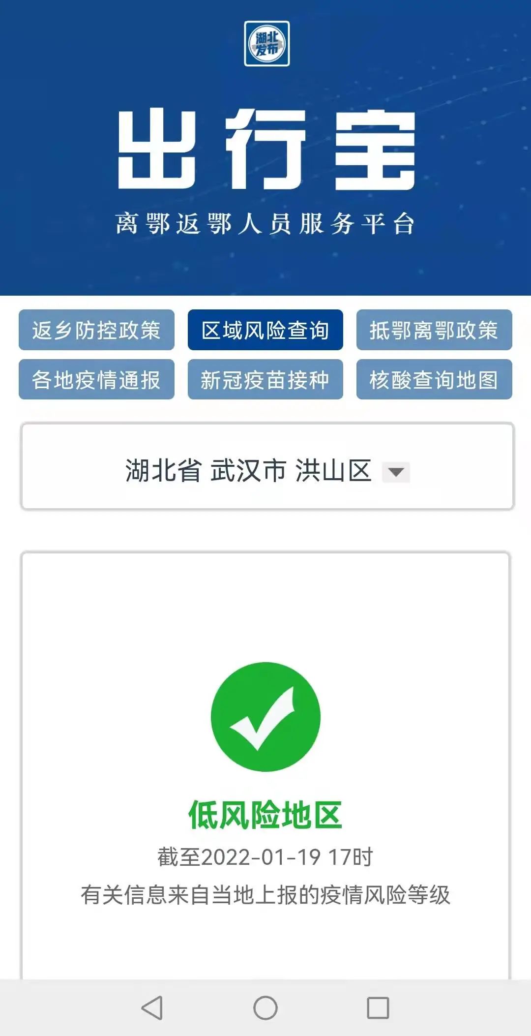 可实时查询你所在或所去区域的疫情风险等级