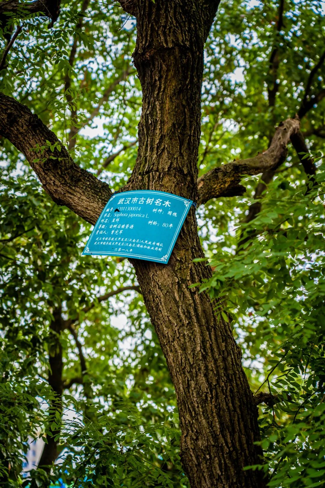 这处古树群位于后官湖畔的沌阳街水府村,有国槐、柞木、樟树、杜仲、朴树、枣树等。年纪最大的,是一株国槐,已有114岁。