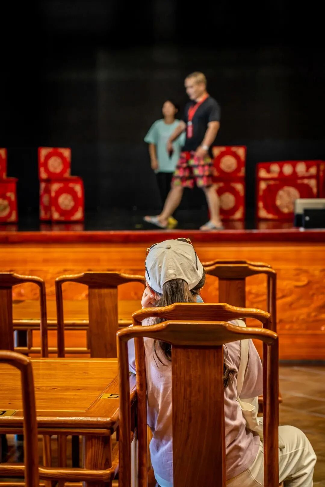 站在雕梁画栋下,大红立柱、六角宫灯、雕栏雅座、巨型屏风传递着一场场精彩的文化盛宴。