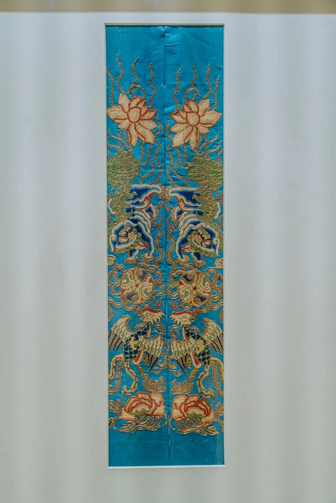 本次「锦绣时光」艺术展分为刺绣和织锦两大板块,共展出清代宫廷绣片与刺绣装饰及织锦共46件,涉及织物、成衣配饰和鉴赏品等。