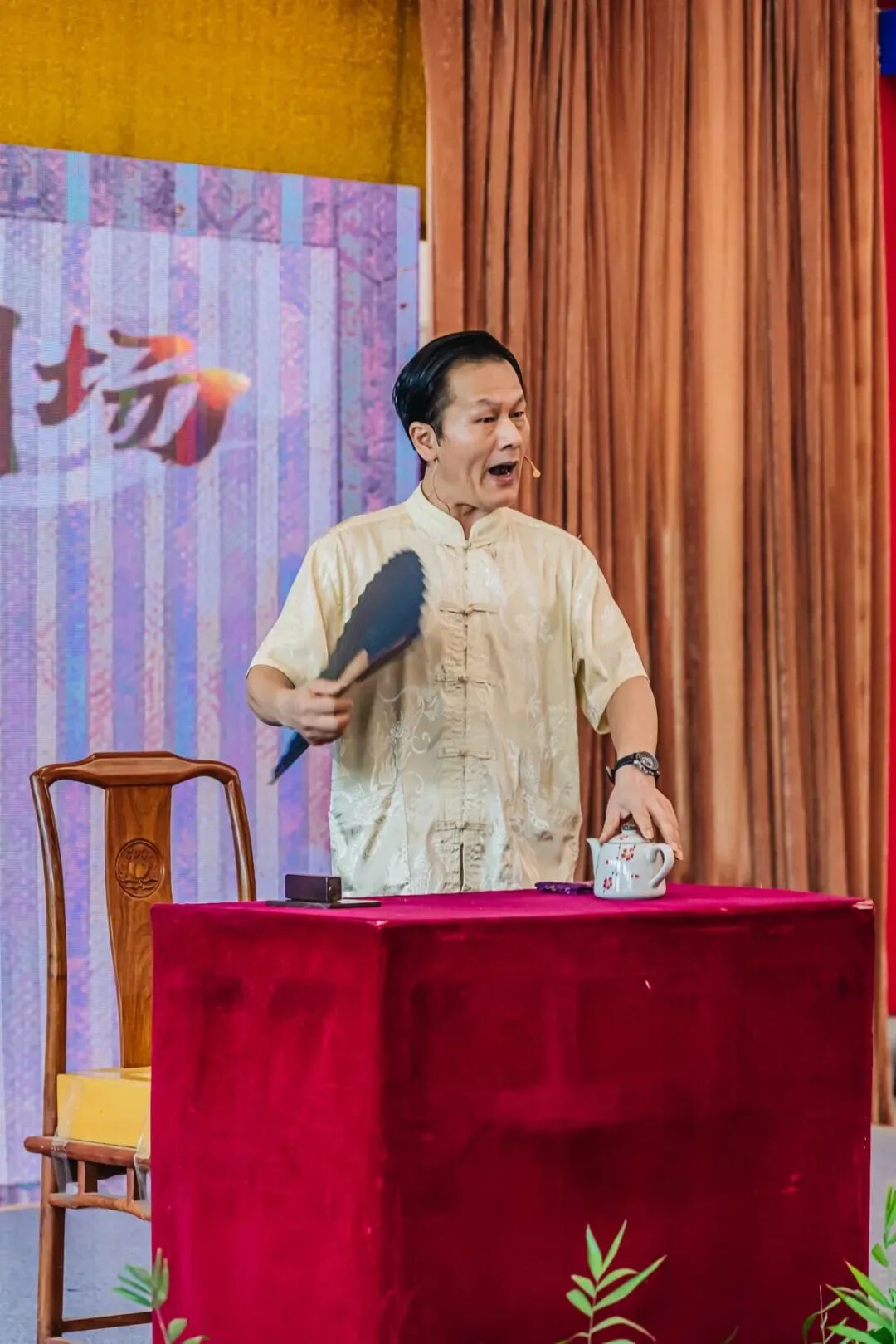 湖北省著名评书表演艺术家米满堂,生动昂扬地讲述三国时期定军山之战,台下的观众听得入迷,掌声连连。