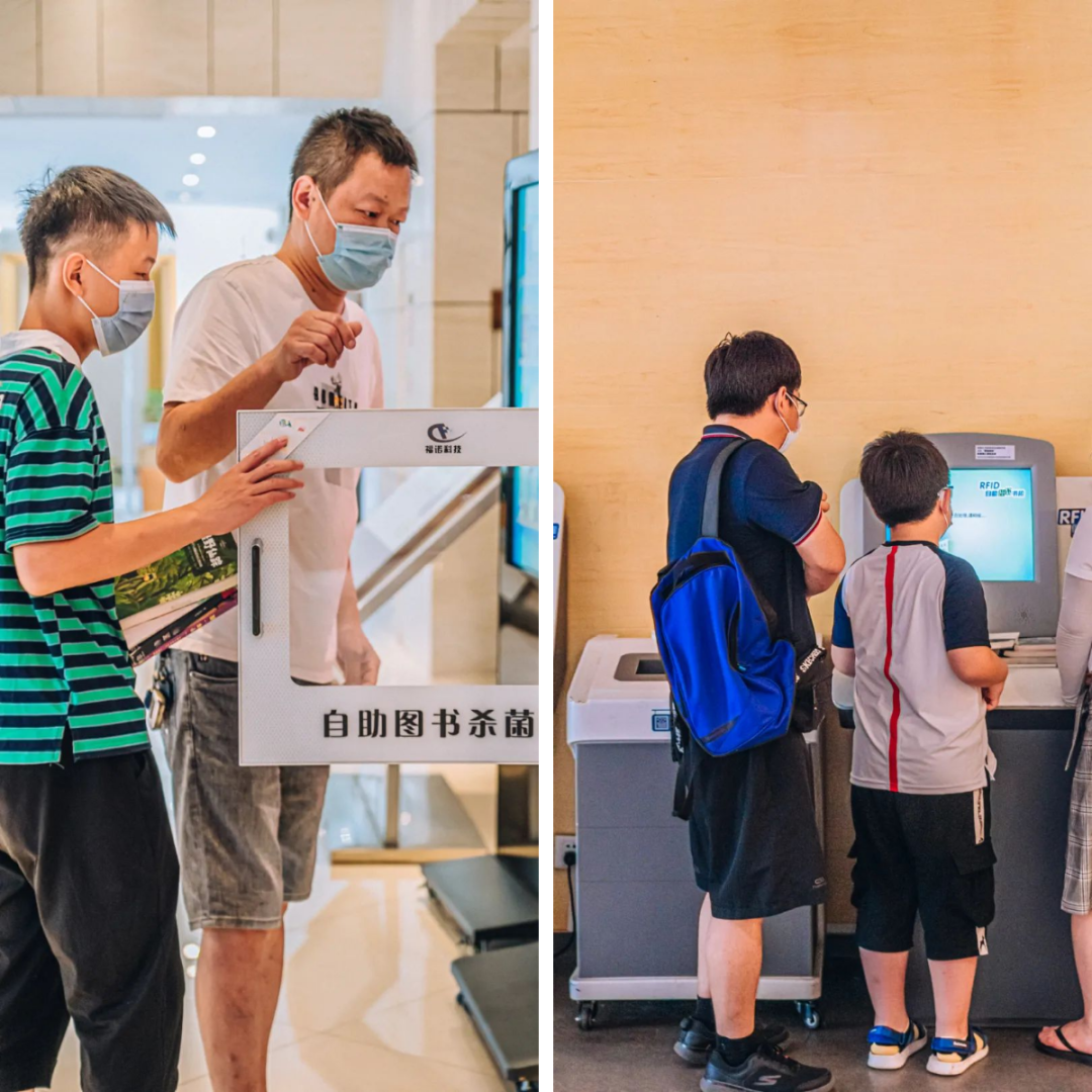静音舱、自助还书、自助图书杀菌机、自动感应灯光等各类人性化设施齐具备,还有无障碍通道供残疾读者使用,人人都能享受文艺的生活空间。