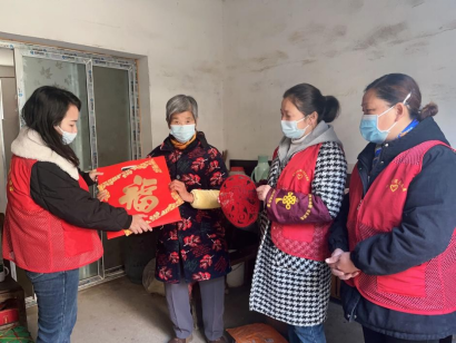 “王婆婆,快过年啦,给您送点福字和春联,今年子女回来过年吗?您要是有什么需求和我说呀”每到一户,志愿者都热情说道,同时了解老人的需求和生活困难。