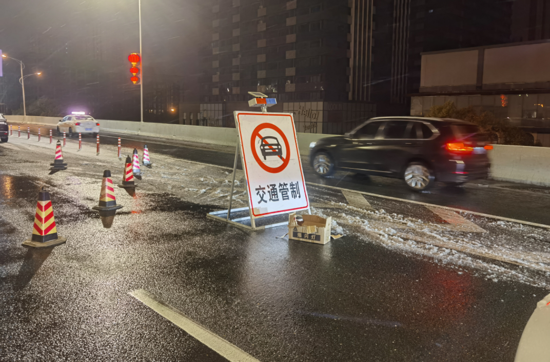 区交通大队按照上级部署,加强警力值守,迅速启动冰雪低温天气道路交通应急机制,会同城管(交通运输)、路政等相关部门联动,实施融雪、清障、救援等工作。在东风大道、江城大道、汉洪高速等重点路段,快速处置交通事故,开展交通疏导,并在高速路口、高架匝道口摆放交通安全宣传提示、引导标识牌,开启LED显示屏,引导车辆减速、安全行驶。