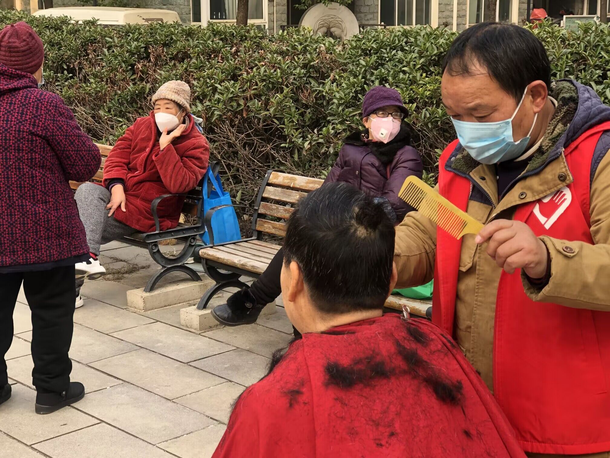 “张爷爷,今天在家吗?快过年了,我带着理发师到你家里给你理发呀!”“小李,谢谢你每个月带理发师来,解决我的大麻烦,居家养老也是多亏了有你!”打完电话的江大园社区001网格员带着理发师匆匆向张爷爷家走去。