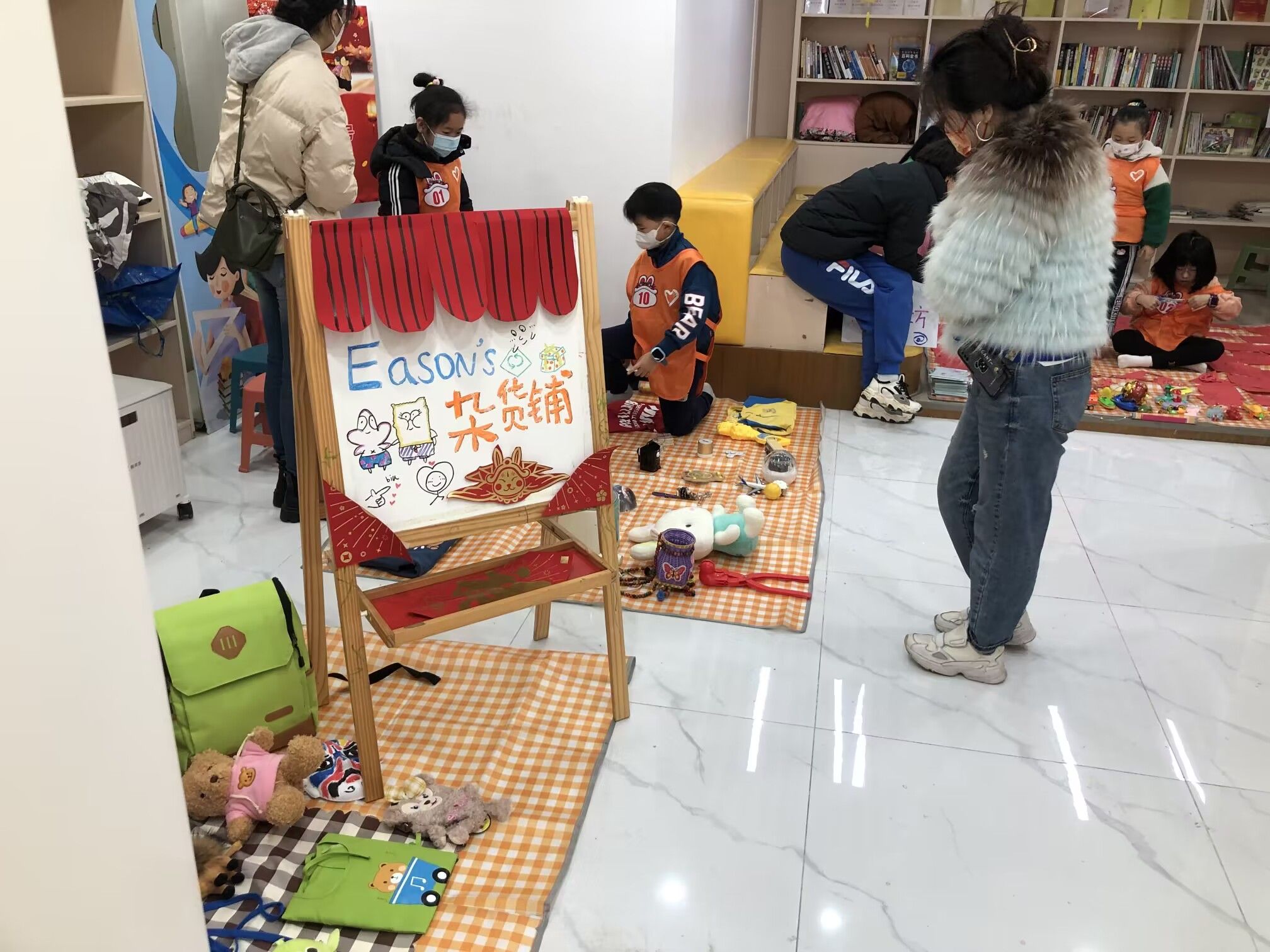 1月14日,寒潮来袭冷风瑟瑟,江大园社区青少年空间“青春年味市集”正热火朝天地进行。室内分隔出五大板块区域,闲置物品换置区里一个个小摊主们铺着地垫,细心装饰着自己的小铺,有板有眼地讨价还价。