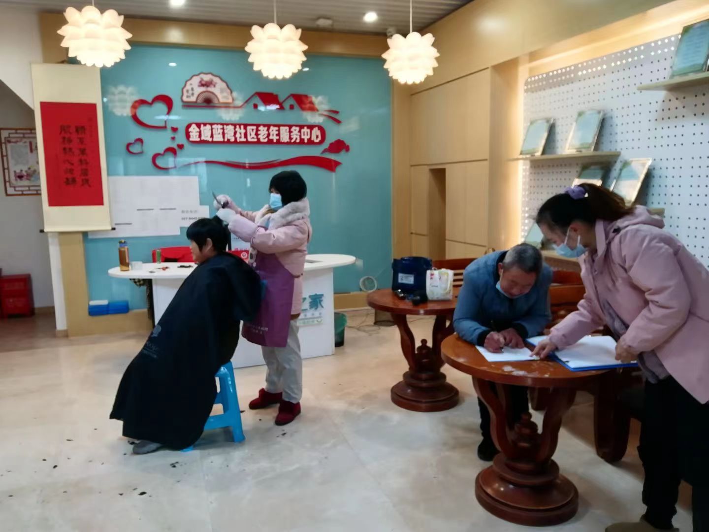 车谷融媒1月17日讯 1月13日,沌阳街金域蓝湾社区老年服务中心开展“焕新颜 迎新春”幸福义剪活动,为辖区老人提供免费理发服务。