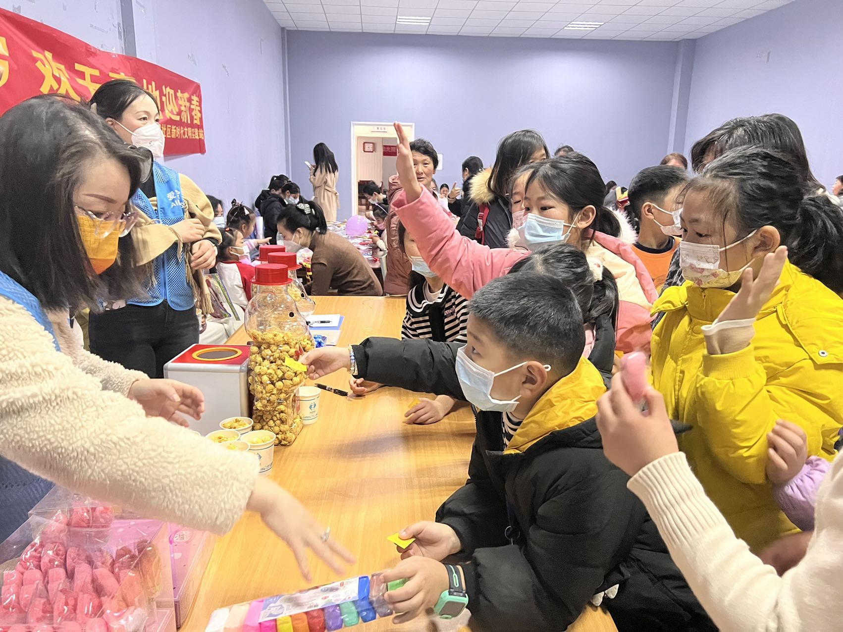 在社区工作人员和活动老师们的组织下,孩子们积极参加“欢乐鞭炮、幸福沙袋、蒙面敲锣、幸运大抽奖”等趣味游戏活动,小区里洋溢着一片欢声笑语、喜气洋洋的节日气氛。孩子们在活动中感受快乐的同时,学会了相互合作、真诚团结。老师通过游戏向孩子们介绍了关于新年的故事,讲解了春节拜年、扫尘除旧、办年货等风俗习惯,进一步加深孩子们对传统节日文化的认识。