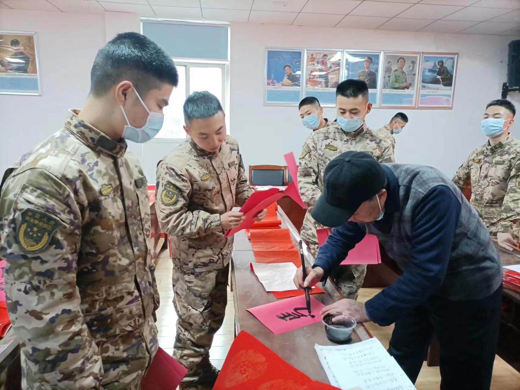 活动现场,书法老师们满怀激情、挥墨泼毫,书写了一幅幅以双拥为主题,饱含新年美好祝愿的春联福字,并与部队官兵们相互交流,“联”想新春。红火的福字象征着来年红红火火,也为官兵在腊月寒冬带去浓浓暖意。