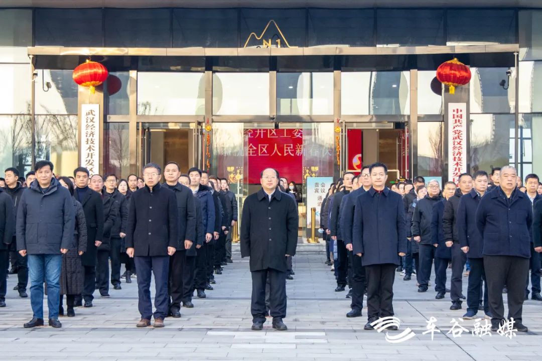 车谷融媒1月28日讯 虎啸荆楚展雄姿,玉兔携春又迎新。1月28日,春节后的第一个工作日,武汉经开区举行庄严的升国旗仪式,吹响全面贯彻党的二十大精神的号角,扬起打造“中国车谷”的旌旗,再次擂动“借东风、定军山、强沌口、兴汉南”的战鼓,激励广大党员干部坚定信心、昂扬斗志,奋力“追、转、超”,谱写中国车谷高质量发展新篇章。