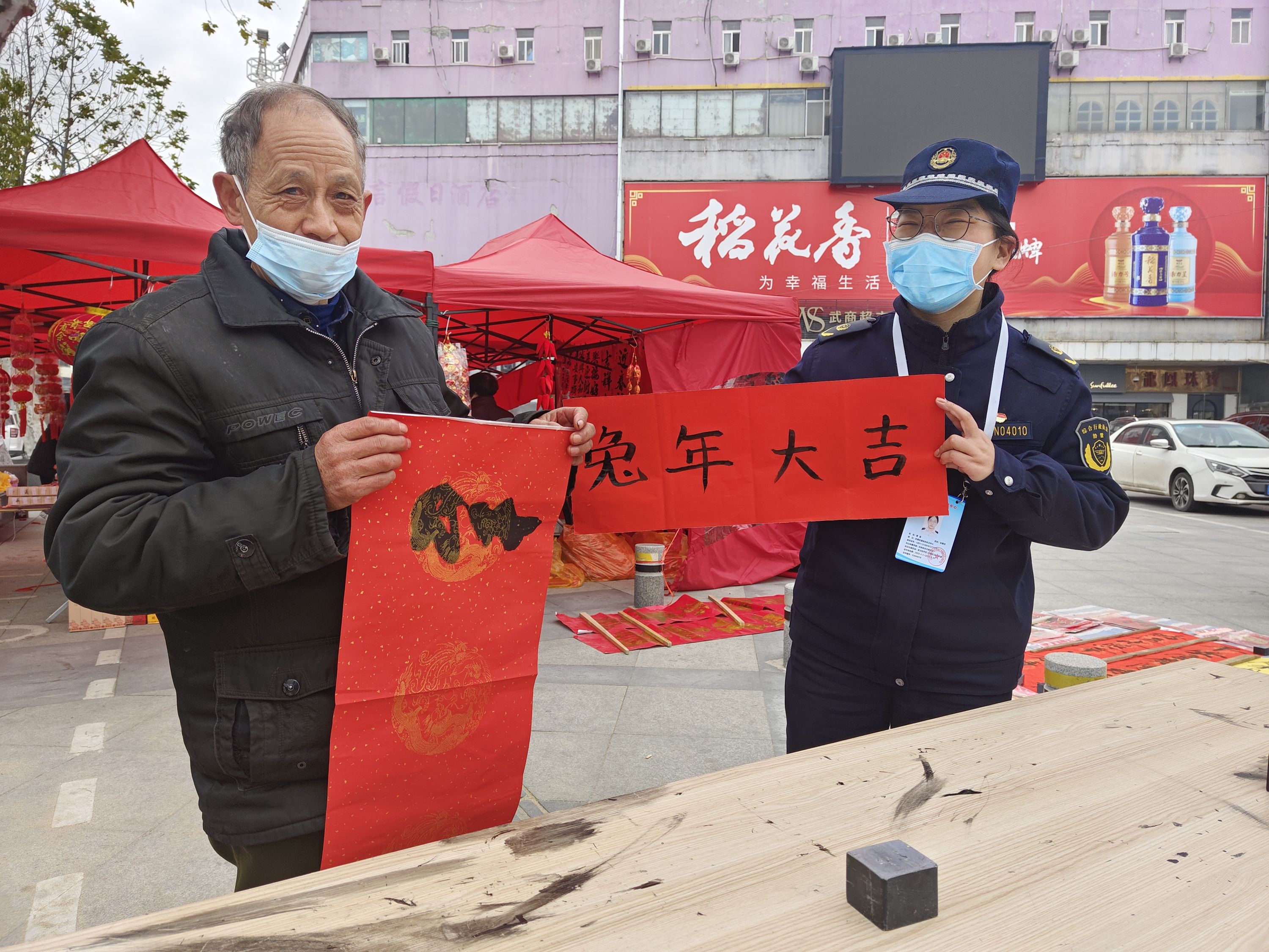 车谷融媒1月29日讯 春节期间,武汉经开区结合当地民俗的传统,专门开辟临时售卖点,“城管蓝”“环卫橙”穿梭在热闹的集市,书写祝福、扮亮环境、维护秩序,守护这浓浓的“年味”。