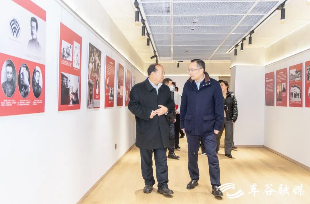 走进书店,刘子清、王广立共同参观阅读区、文创区、儿童区、露台区和美术馆。王广立充分肯定武汉鲁迅书店(美术馆)的建设成效,认为武汉鲁迅书店(美术馆)既是书店、图书馆,更是有文化、有情怀的文创品牌。