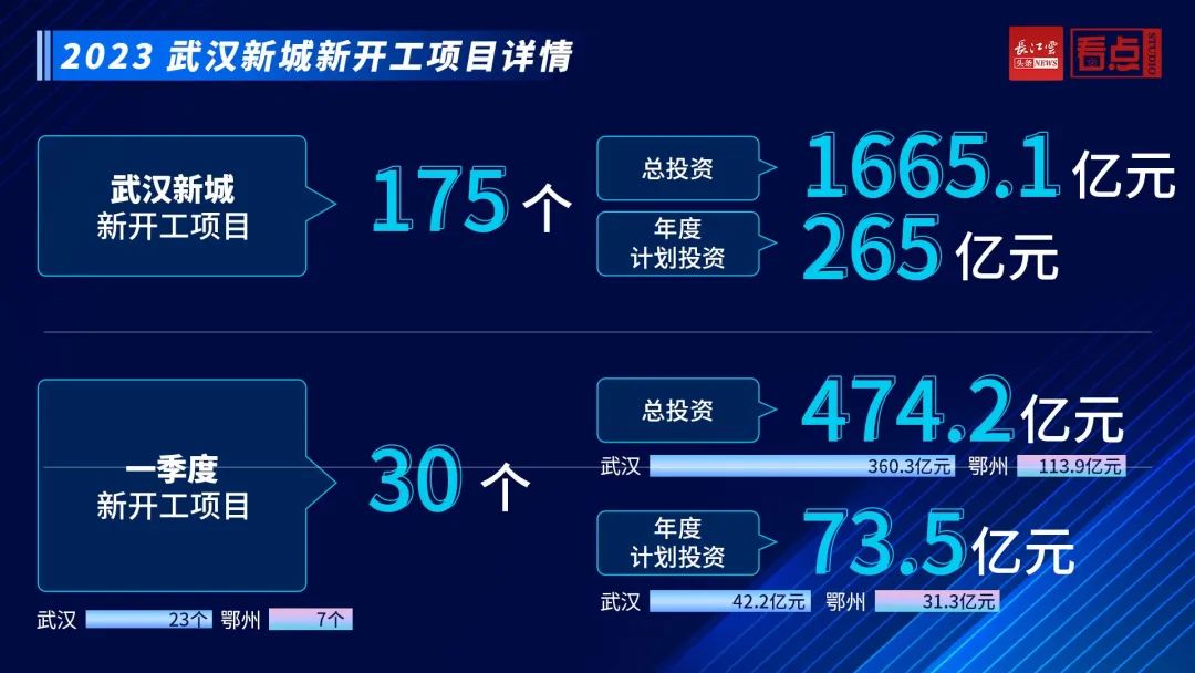 据了解,2023年武汉新城新开工的项目主要以武汉新城创新策源基地为核心,围绕现代服务提升、交通互联互通、生态环境治理、产业创新示范等六大领域多点突破,全力打造“两高地、两中心、一样板”。全年计划新开工项目175个,其中一季度就有30个项目开工,总投资474亿元。