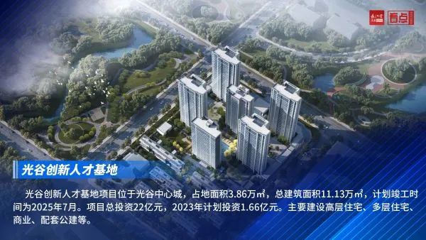 光谷一直以来都是创新创业的热土。一季度开工的光谷创新人才基地项目位于光谷中心城,占地面积3.86万㎡,总建筑面积11.13万㎡,计划竣工时间为2025年7月。项目总投资22亿元,主要建设高层住宅、多层住宅、商业、配套公建等。