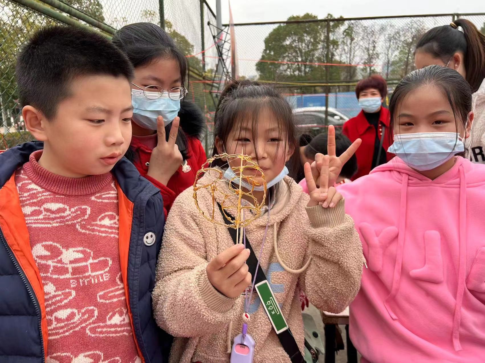 在民俗画糖画环节。现场工作人员还为小朋友讲解了元宵佳节来历的故事。看到社区工作人员准备的自助DIY糖画,孩子们兴奋不已,个个变成了“神笔马良”,粘软的糖稀看似平凡,但经过孩子们的奇思妙想与制作,就能变成一件件有趣的艺术品。大家认真地勾画出自己喜欢的造型,小兔子、小老虎、小鱼、蝴蝶……应有尽有。小朋友们看到自己亲手制作的糖画成型,个个脸上洋溢着幸福的喜悦,兴奋地说:“自己做得比外面买的更甜!”一位手持“福”字的小朋友开心地说:“这是我画的福字,送给大家,祝大家新年快乐,健康幸福!”