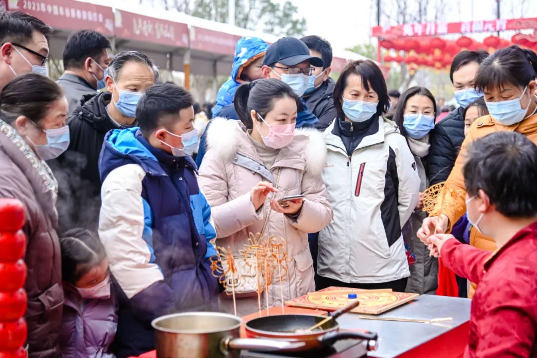 特色美食、民俗表演、国潮演艺……此次灯会集吃喝玩乐于一体,汉服小姐姐挑灯游园,赏灯猜谜人头攒动。糖画、面人、剪纸、书法、篆刻、茶道、古筝等十余项非遗项目依次排开,舞龙舞狮、皮影戏、变脸等民俗表演热闹欢腾。