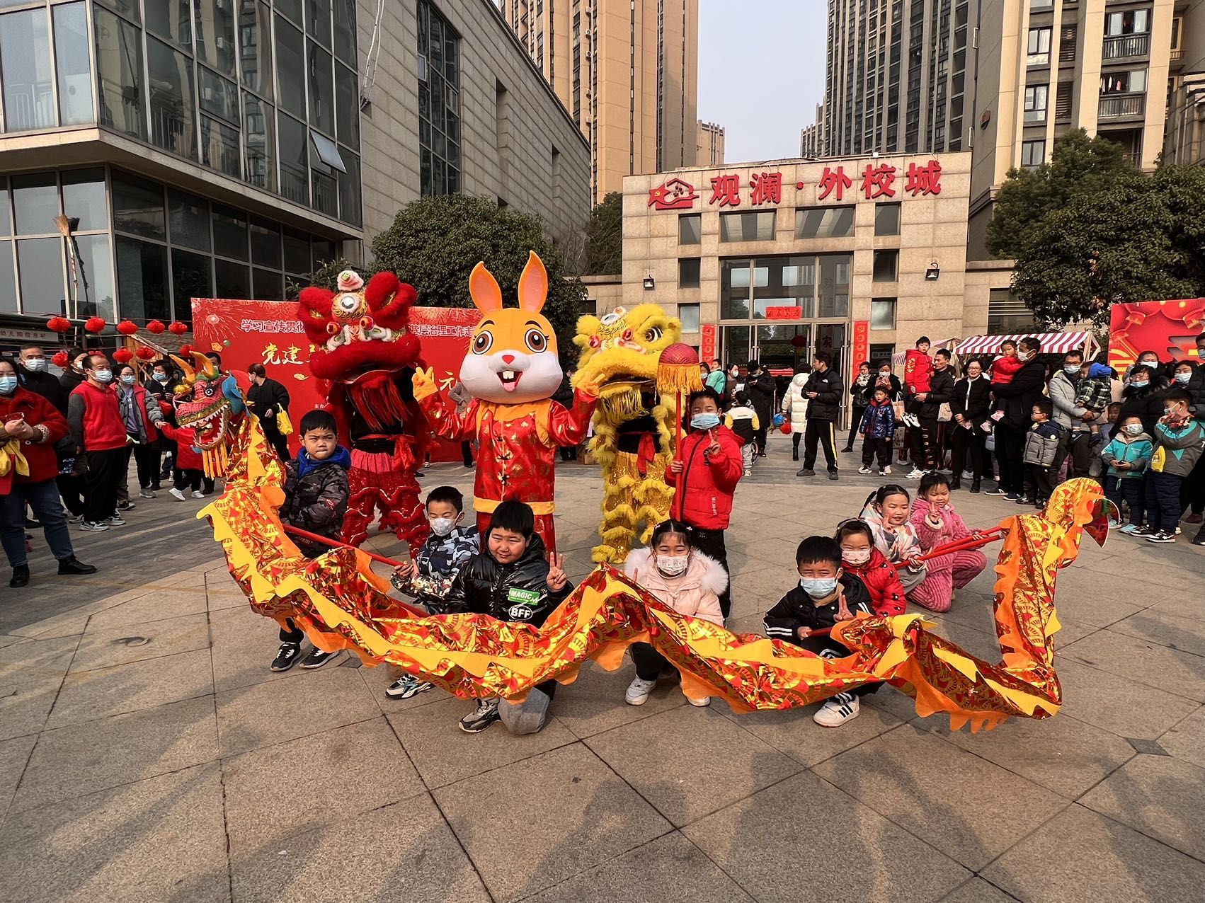 广场上,一条长龙欢腾跃动,引起阵阵欢呼!原来小朋友们也“不甘示弱”,有模有样地舞动醒狮、表演萌龙戏珠,为大家送上新春祝福,引得现场家长和其他小朋友阵阵欢笑。