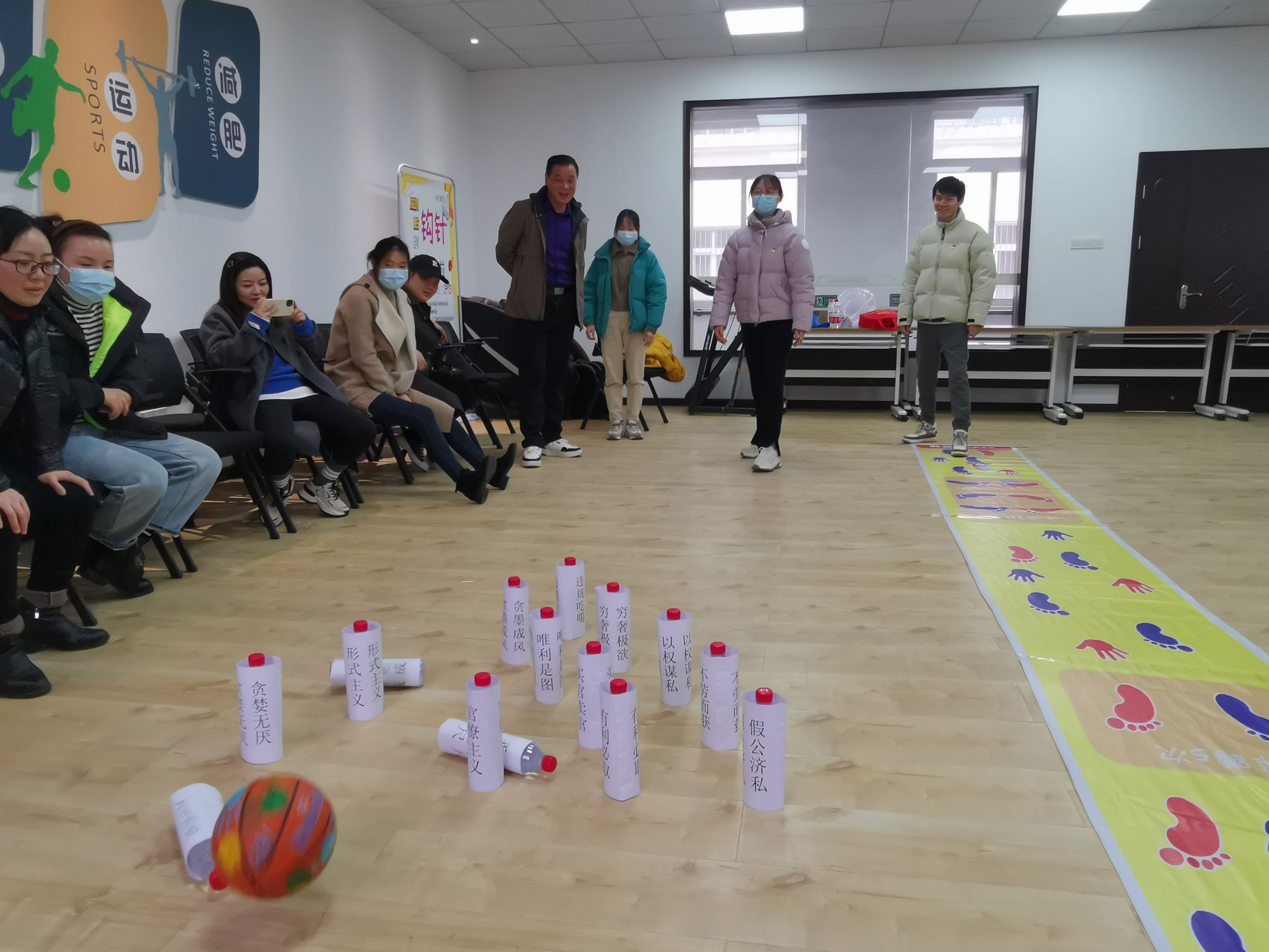 “学习强国”“四个全面”“大局意识”……在活动室里,正如火如荼的开展关于二十大热词猜猜猜的趣味活动。此次活动以“红色趣味学习,廉动清风正气”为主题,主要围绕廉政主题开展4个生动有趣的游戏活动。活动分别是:党建热词猜猜猜、反腐之风大家吹、明辨是非走正道、清正廉洁保龄球。大家分成清风队VS廉洁队,两组进行四轮游戏比拼,采取积分制,两组队员发挥特长,群策群力进行角逐。