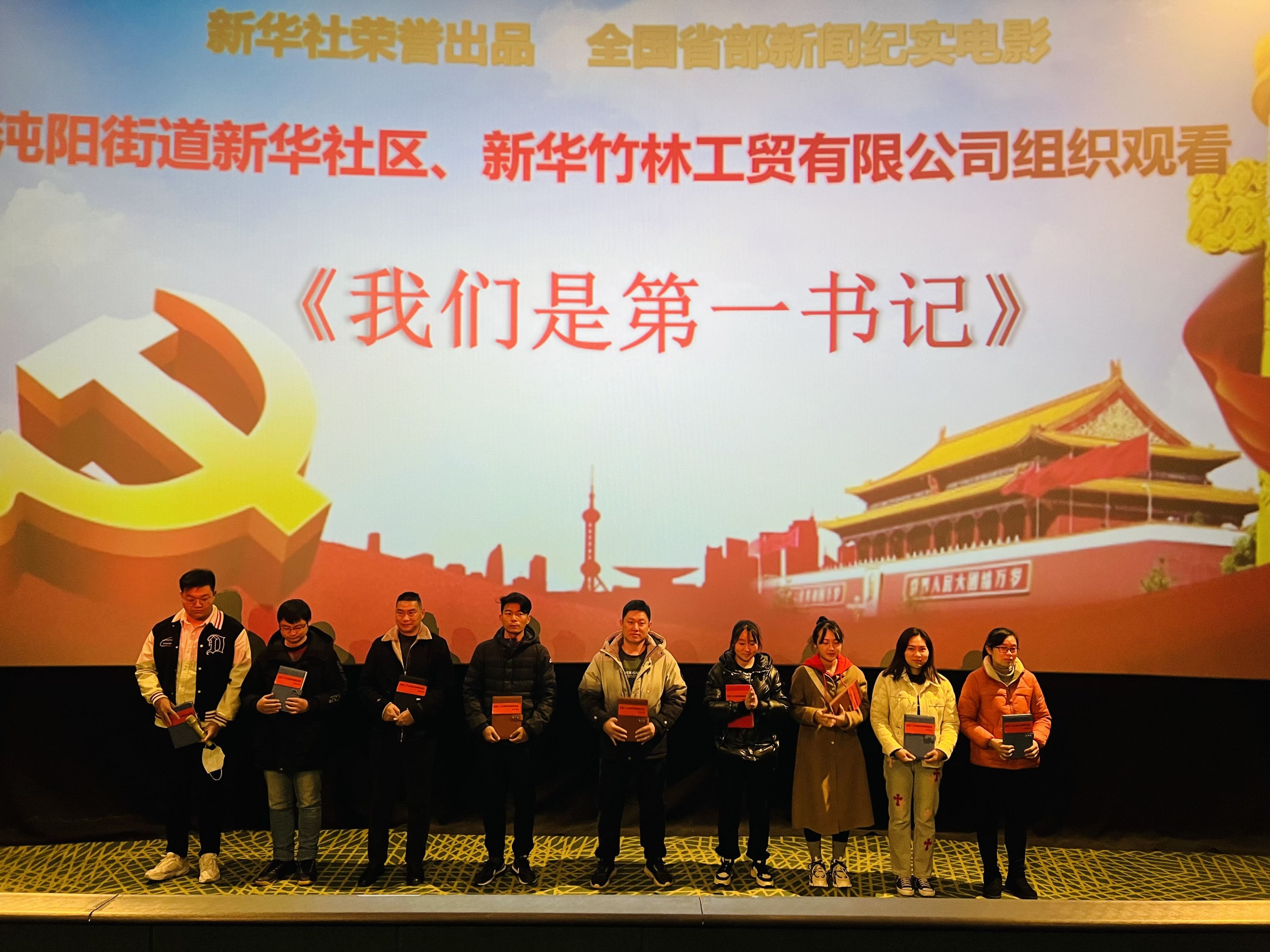 在新华竹林工贸,组织人带着大家了解故事背景。电影党课《我们是第一书记》,真实记录了第一书记们为了老百姓过上幸福生活,身体力行扎根扶贫一线的故事。他们带领村民搞产业、办教育、抗天灾、保丰收、易地扶贫搬迁,他们用生命兑现承诺,用奉献诠释时代担当。8年间,近1亿人脱贫,832个贫困县全部摘帽。他们用热血挥洒青春、用行动诠释奉献,传达的正是那份勇气、责任和担当精神。