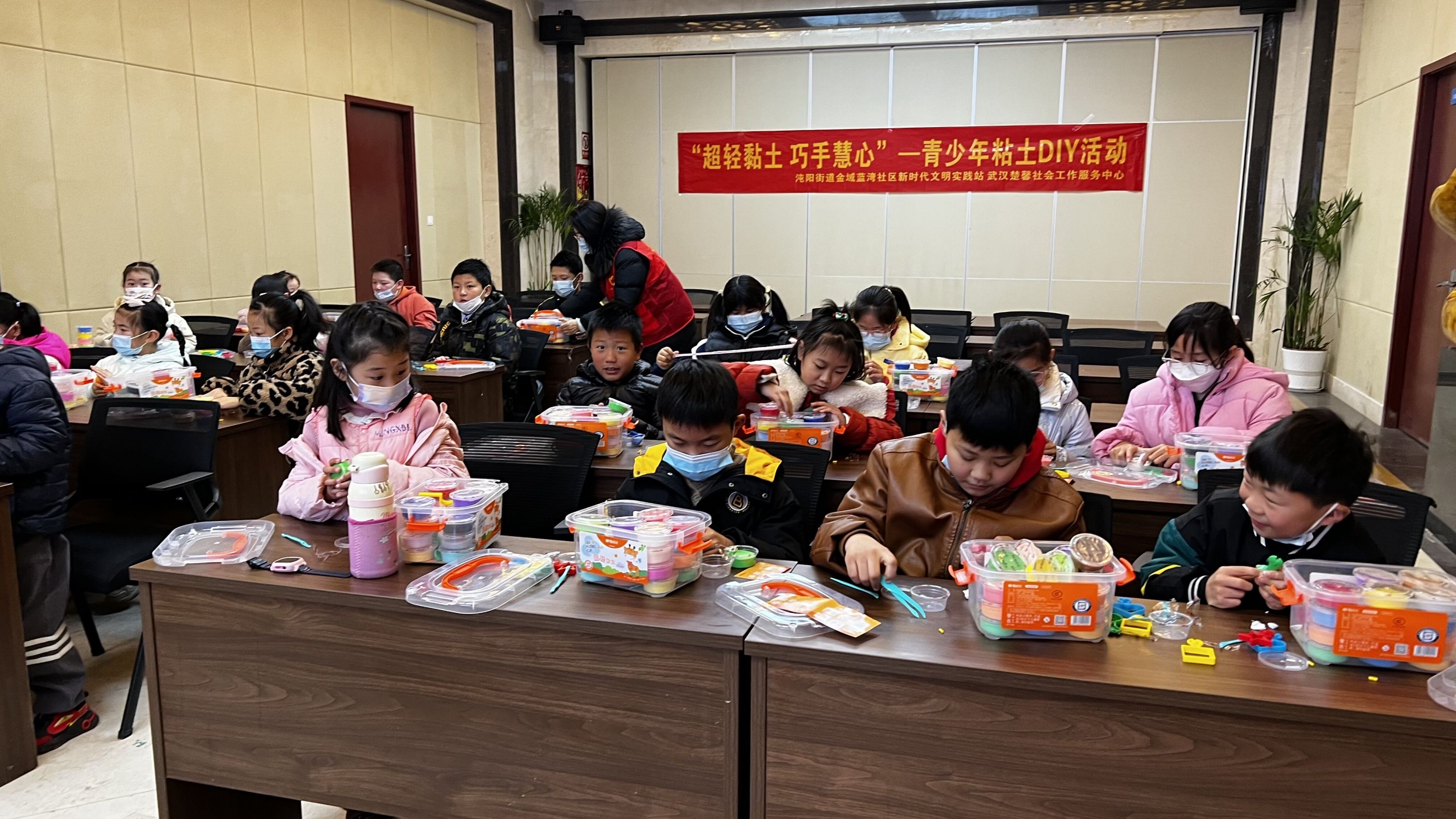 车谷融媒2月21日讯 2月19日,沌阳街道金域蓝湾社区新时代文明实践站联合武汉楚馨社会工作服务中心开展“超轻粘土 巧手慧心”活动,本次活动共吸引30余名青少年参加。