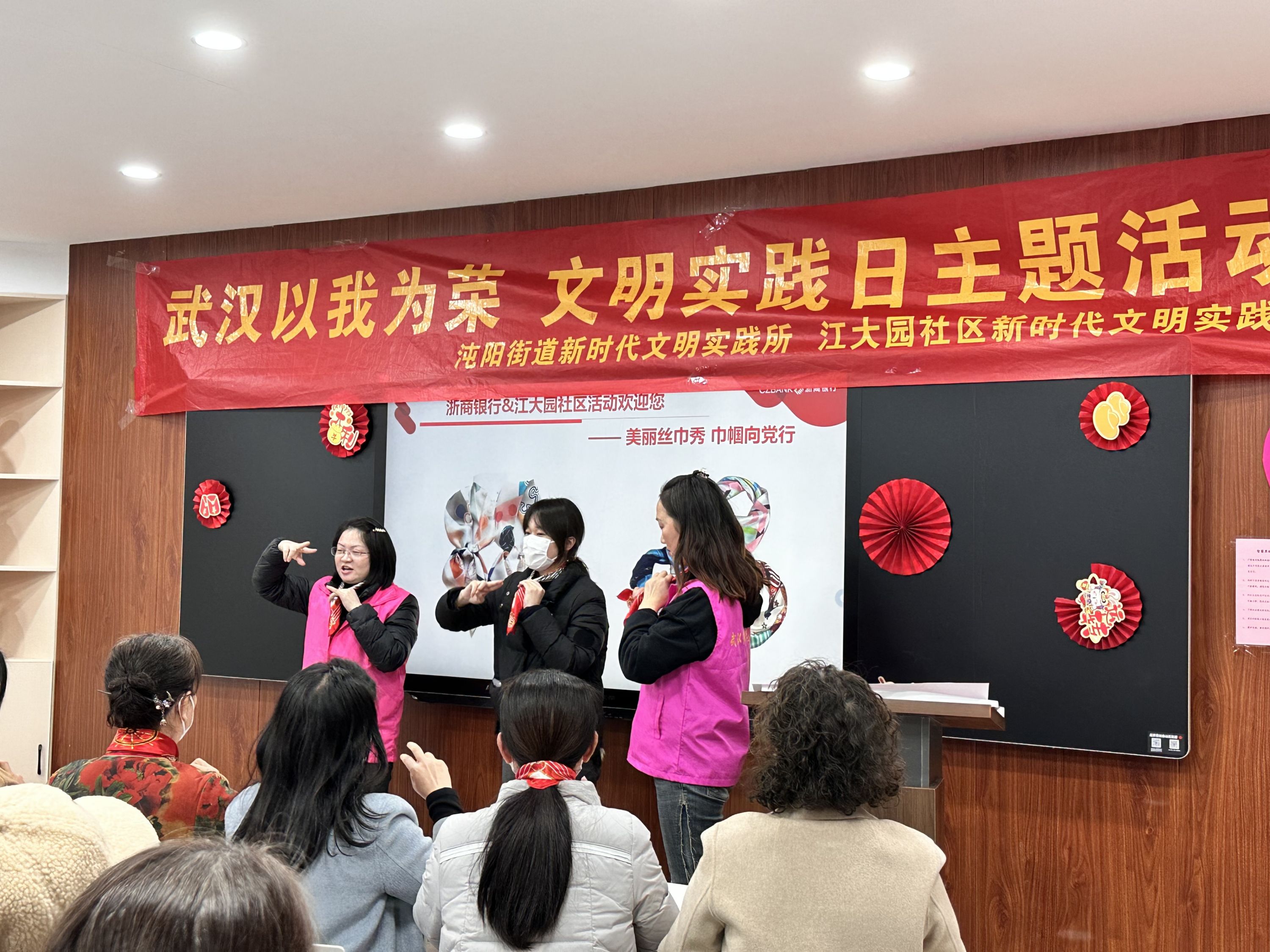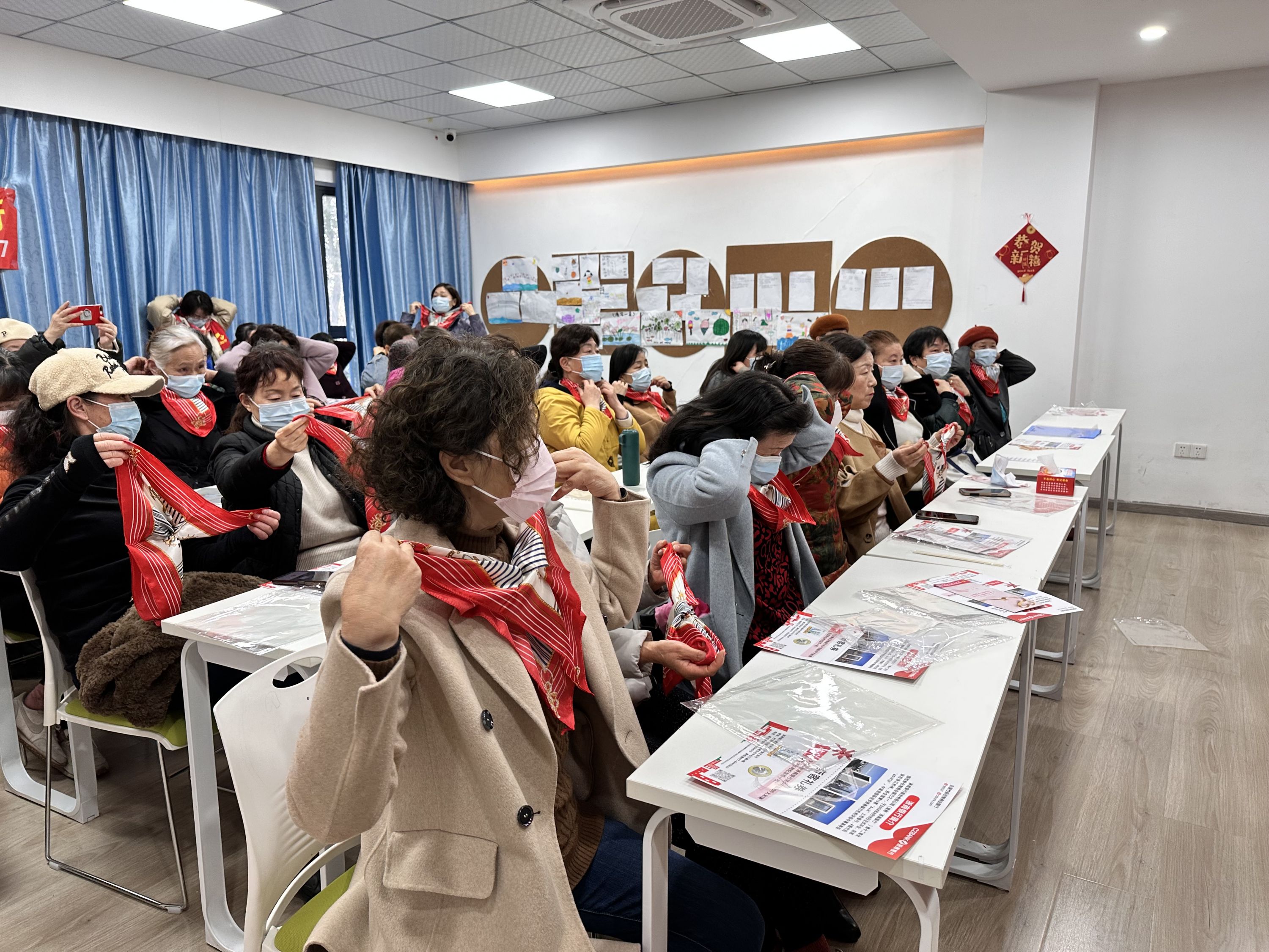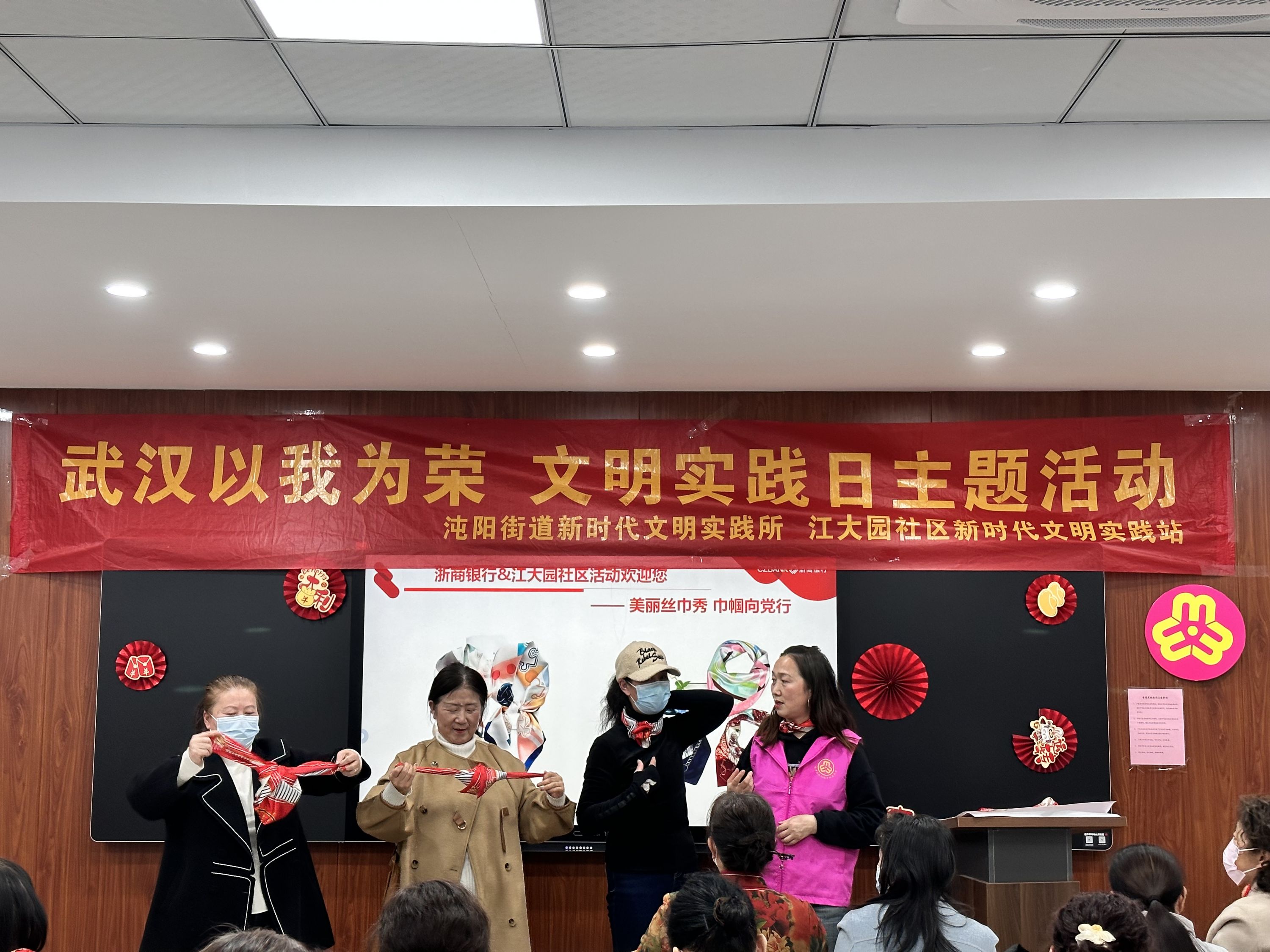 2月21日,沌阳街江大园社区妇联携手浙商银行在社区妇女之家开展丝巾的搭配和系法课堂。