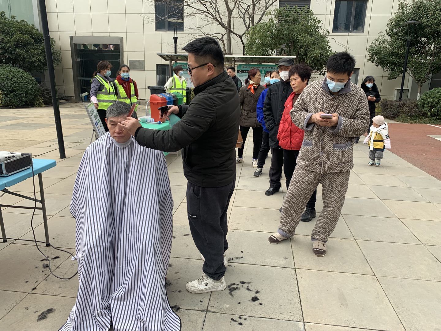 “平时忙得连去理发店剪头发的时间都没有,今天下楼就可以理发,对于我们真的是太方便了!”活动现场还吸引了不少穿着黄色、绿色外卖服的外卖员过来参加,剪完头发后大家纷纷感叹着。
