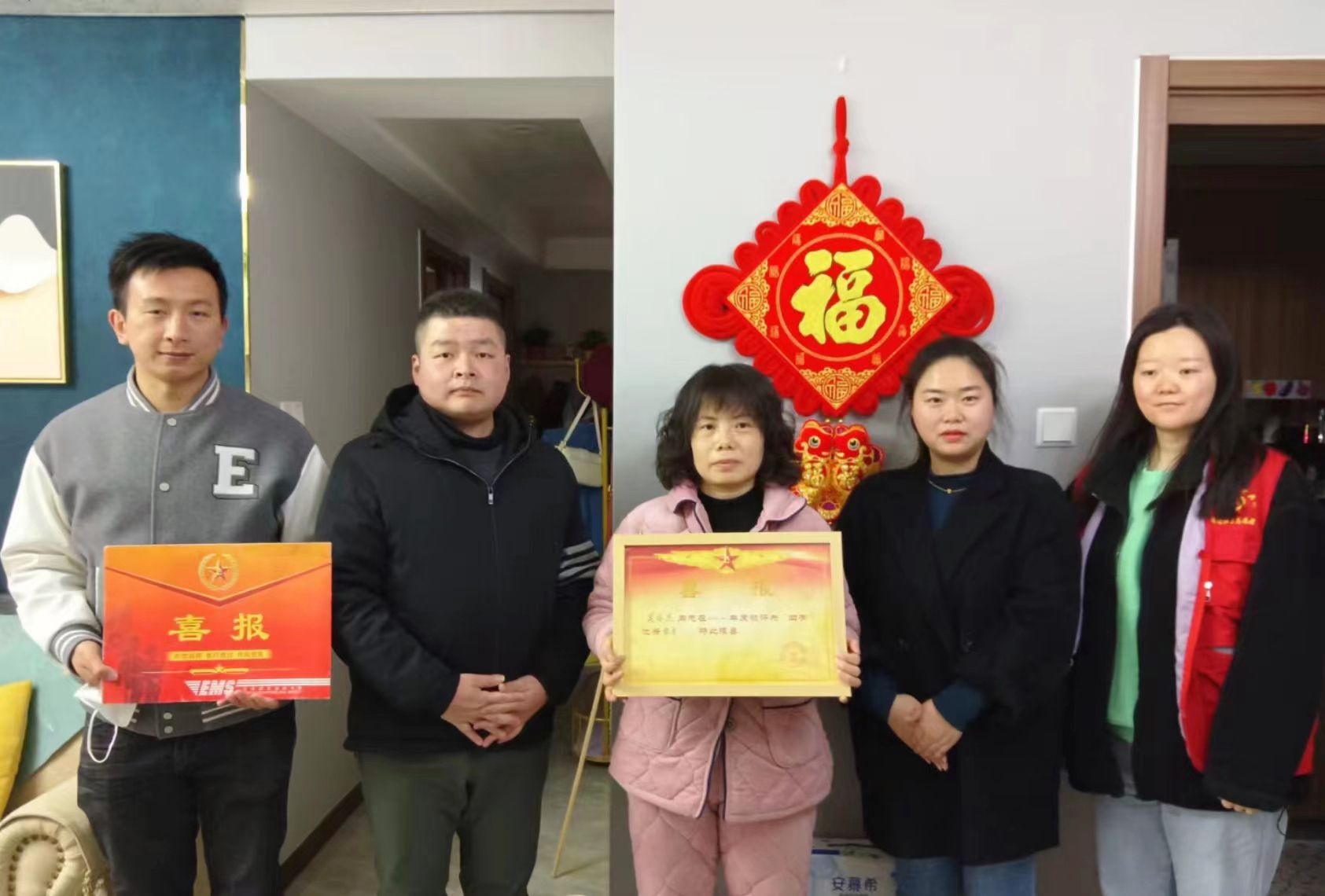 2月21日,沌口街道党群服务中心退役军人服务站和同德社区一行来到吴亦杰家中,为其家属送上“四有”学员喜报,并向他们表示祝贺,对他们为国防事业的支持和奉献表示感谢,勉励其儿子安心军营、再立新功。