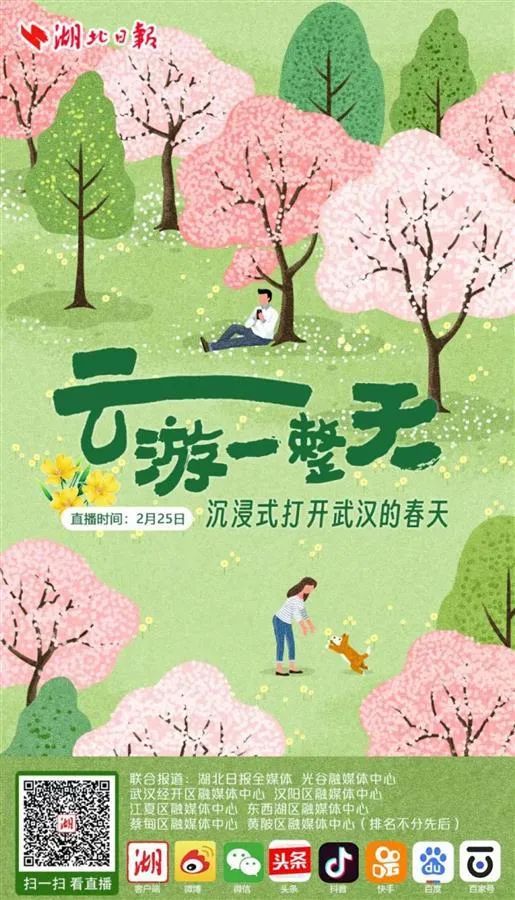 2月25日上午10:00,武汉经开区融媒体中心将与湖北日报全媒体联合开展全媒体直播活动:“云”游汤湖公园,沉浸式打开武汉的春天。
