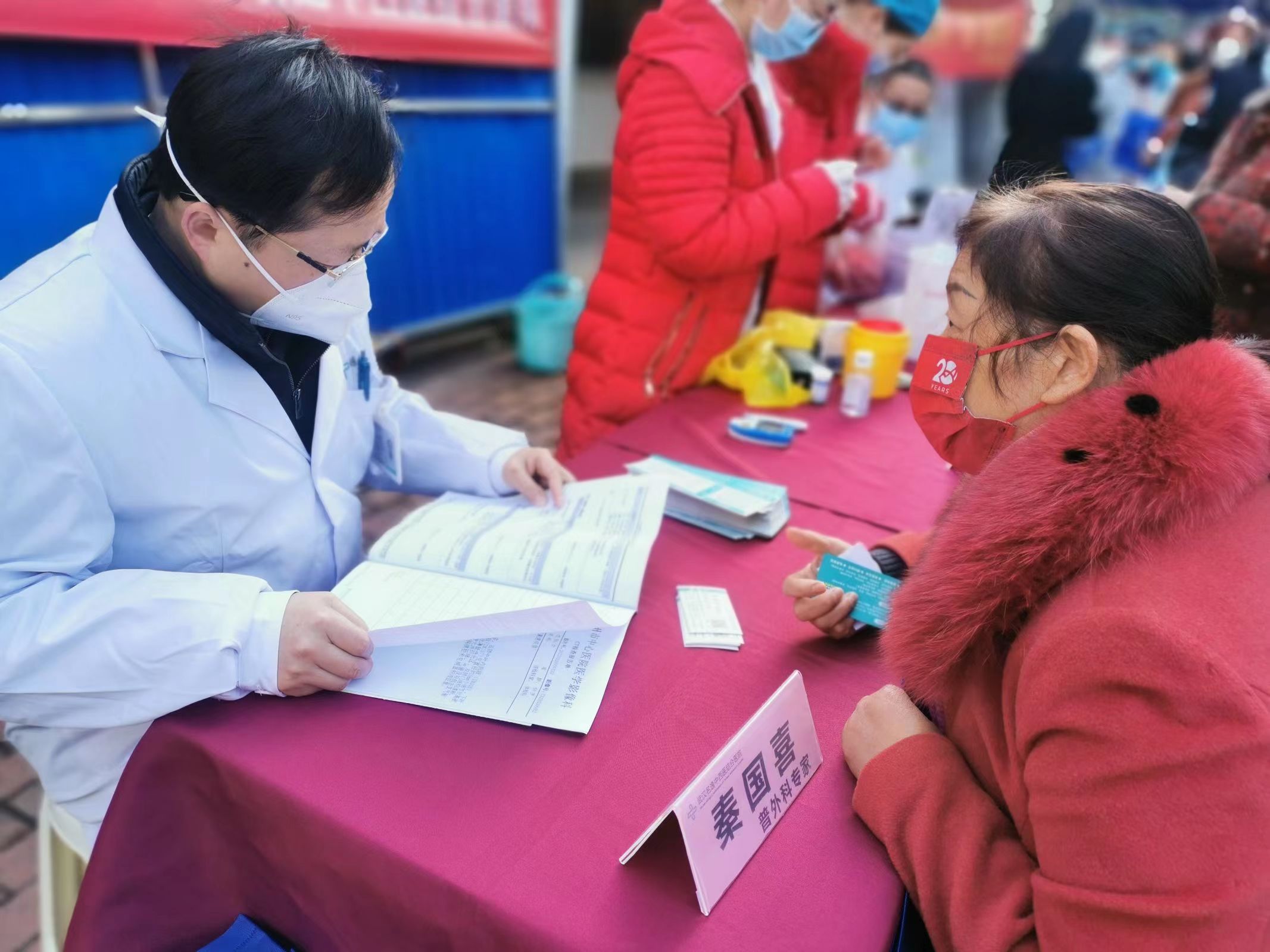 医务工作者们为居民量血压、测血糖、检查口腔健康、推拿按摩,耐心地解答居民提出的高血压、心血管疾病等有关疾病预防、康复指导方面的问题,给现场居民提供科学合理的健康生活建议。