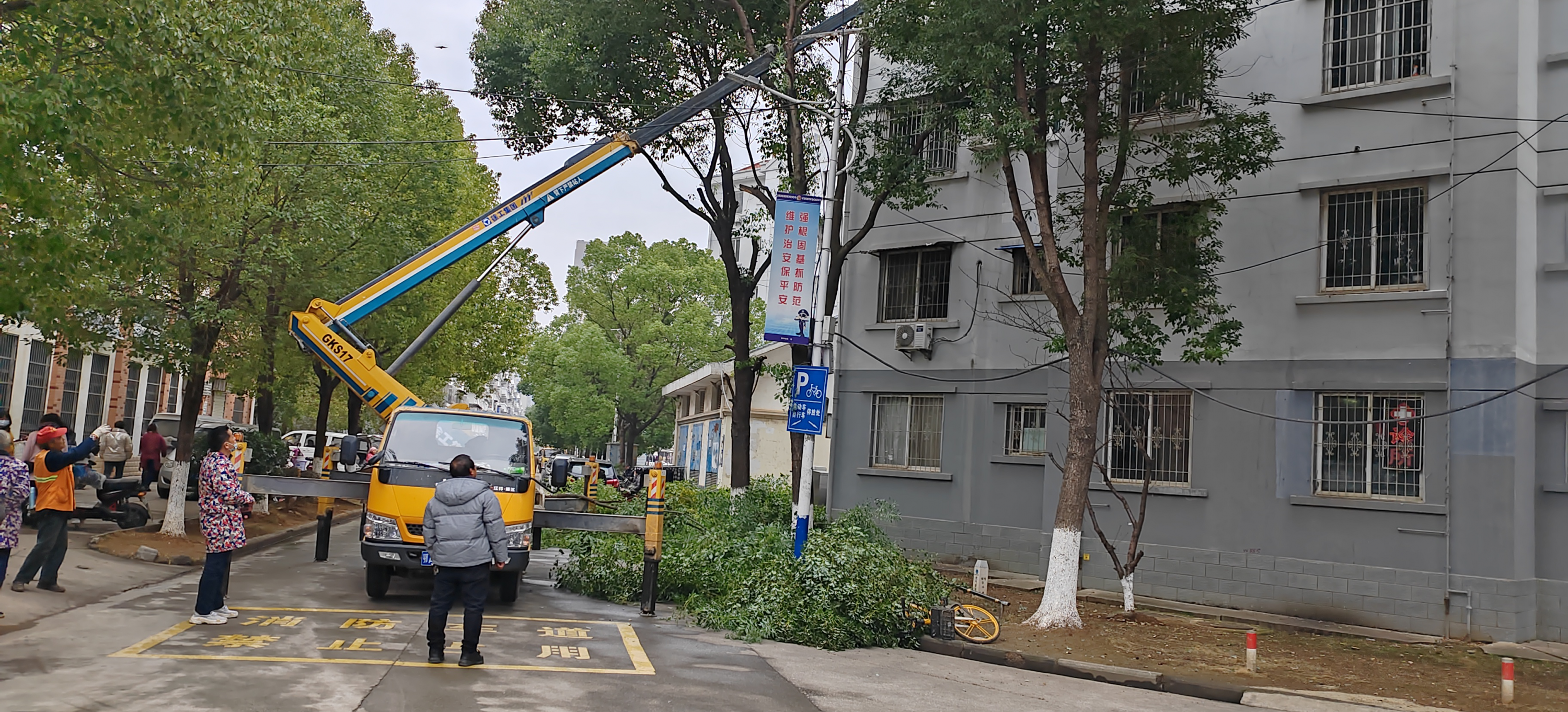 车谷融媒2月27日讯 近日,沌阳街道新华社区联合新华竹林工贸、广园公司,开展以“我为群众办实事”为主题的活动,修剪树枝,照亮居民回家路。