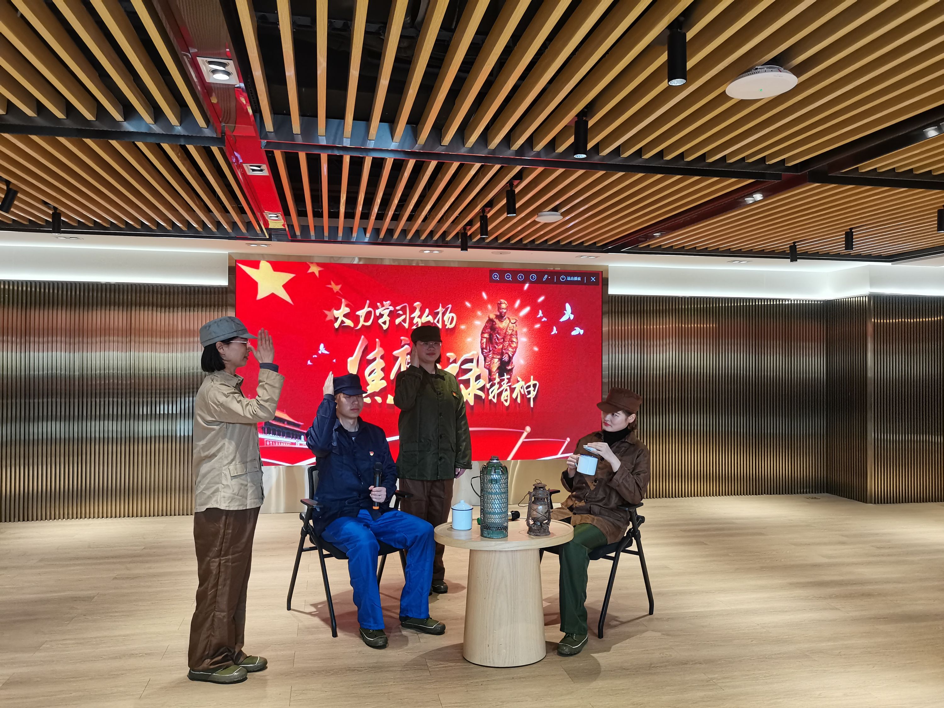 “共产党员应该在群众最困难的时候,出现在群众的面前,在群众最需要帮助的时候,去关心群众,帮助群众……”本次主题党日活动,社区青年党员自编自导了红色廉政舞台剧《焦裕禄》。破旧的外衣,生锈的马灯,竹编的热水瓶,年代感瞬间拉满,加上“演员们”动情的表演,告诫党员同志要勤俭节约,艰苦奋斗,特别是要廉洁奉公,把“廉”字写在心里,落实在行动上。
