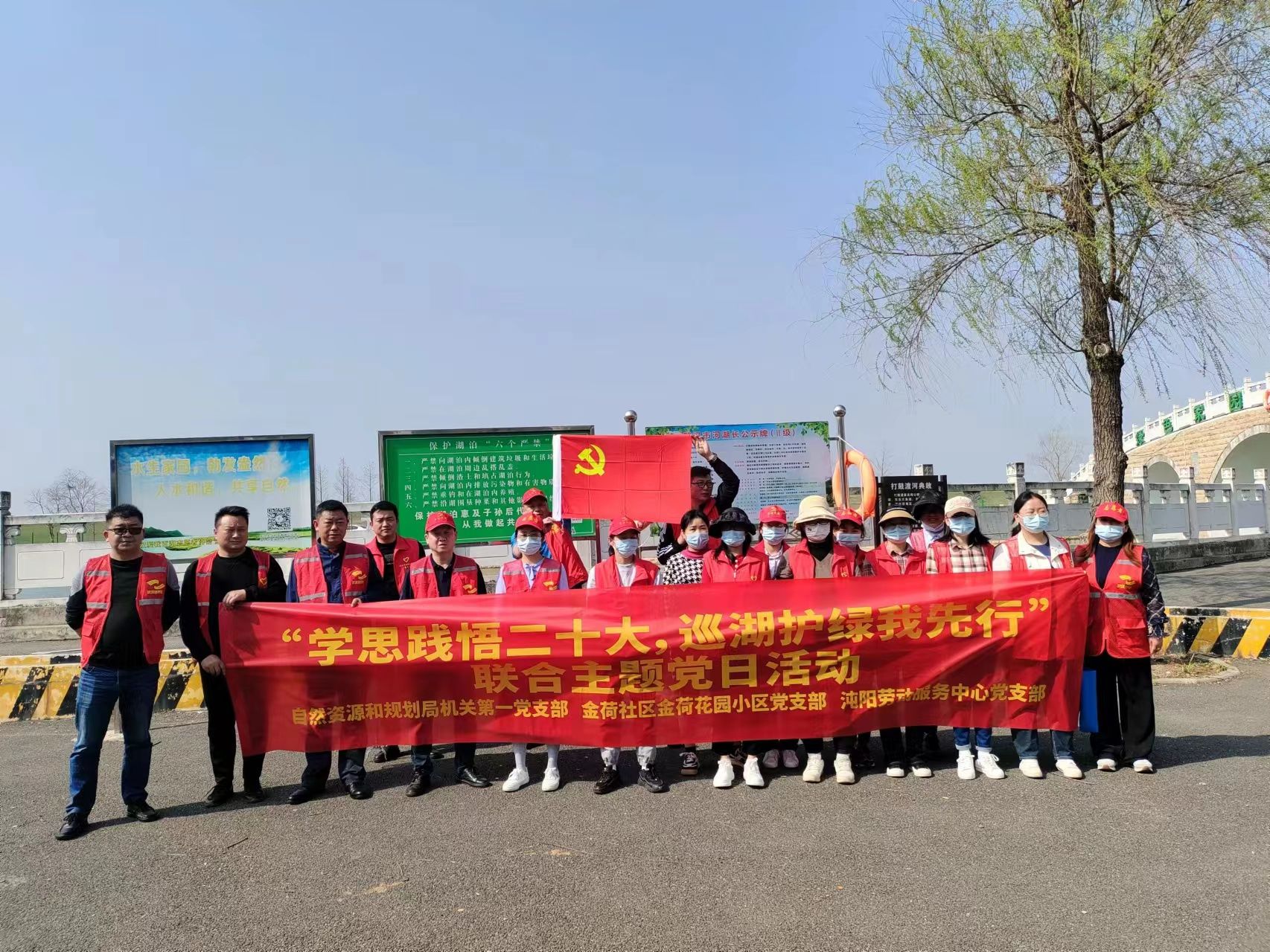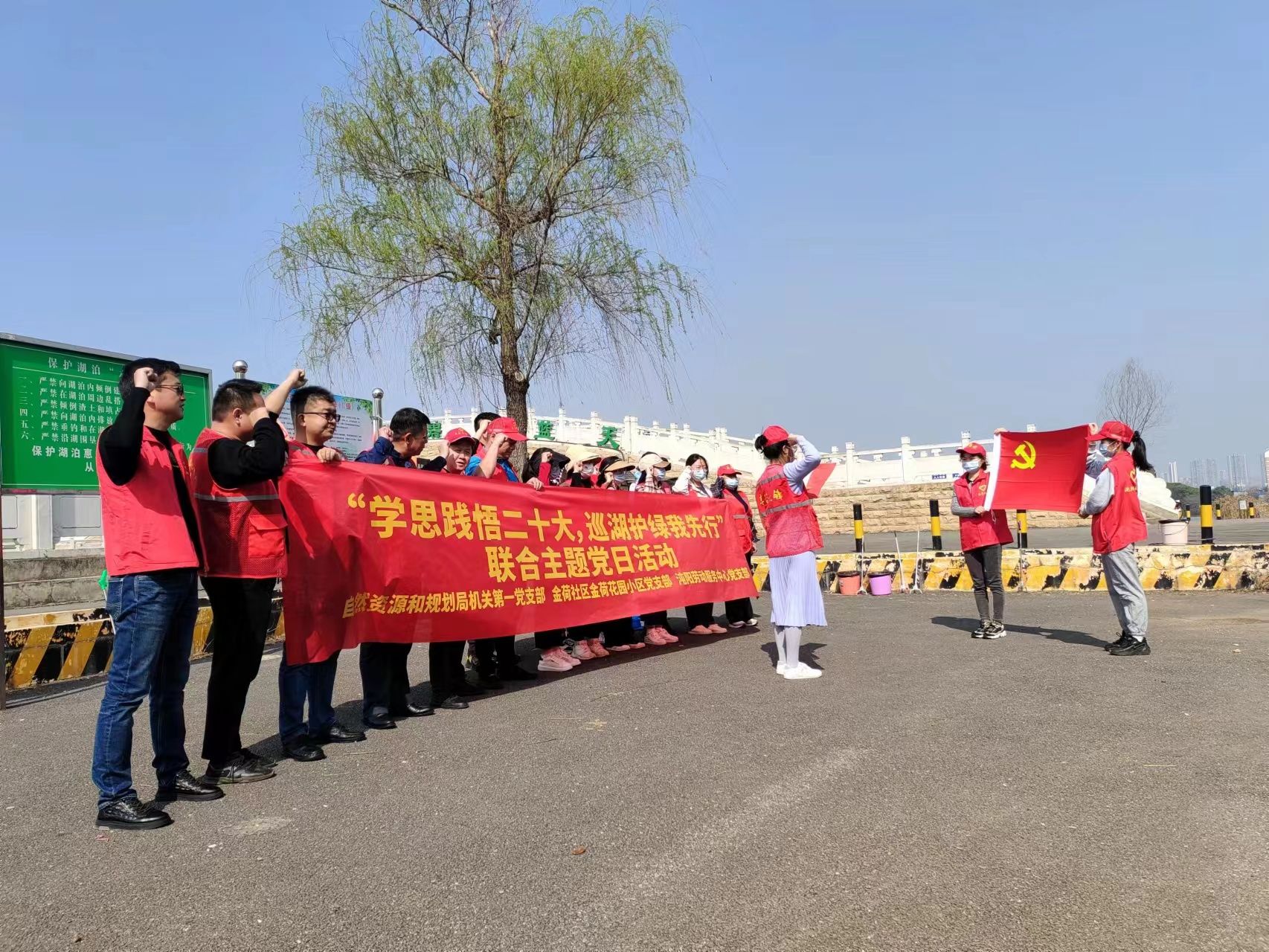 车谷融媒3月10日讯 3月9日,沌阳街道金荷社区金荷花园小区党支部联合共建单位区自然资源和规划局机关第一党支部、沌阳劳动服务中心党支部赴武汉经开区打鼓渡河开展“学思践悟二十大 巡湖护绿我先行”活动。