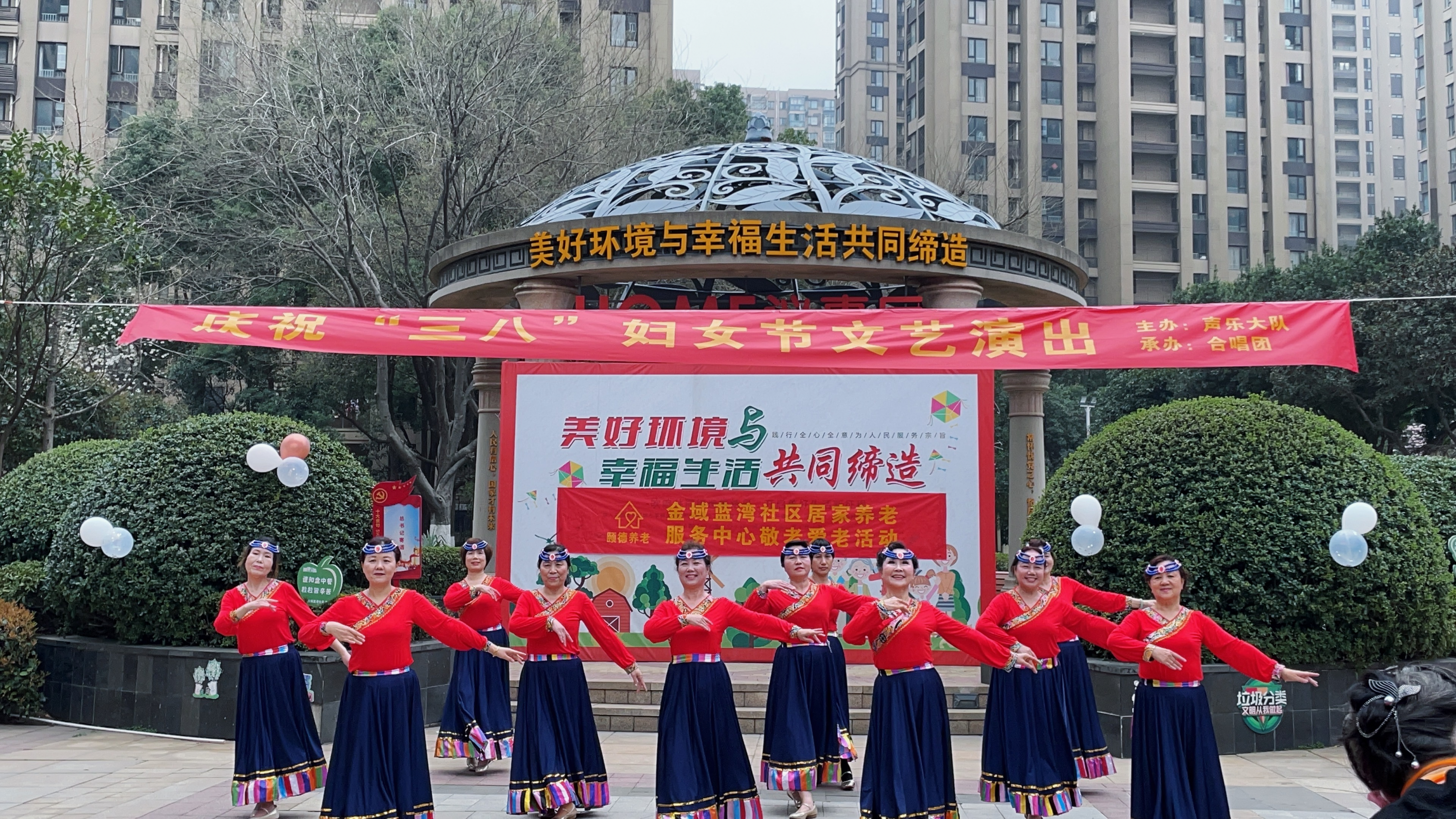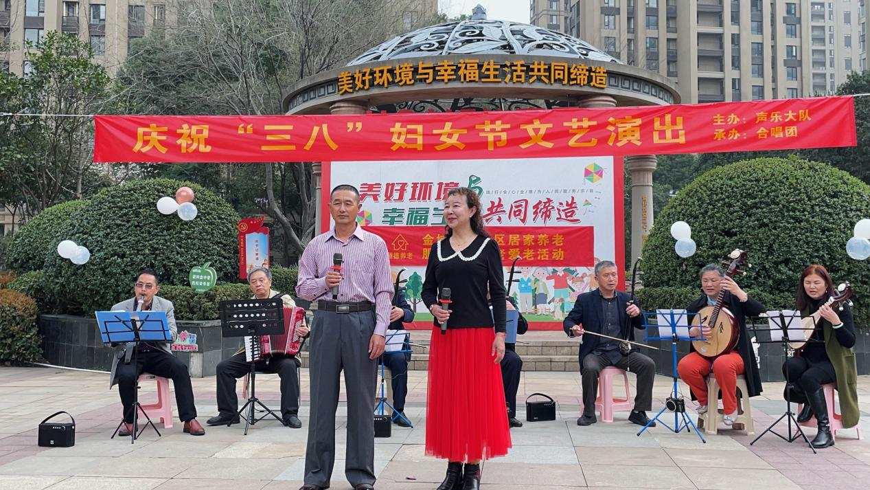 车谷融媒3月10日讯 3月8日下午,沌阳街道金域蓝湾社区在小区广场开展“三月桃花春意浓 巾帼风采绽芳华”庆三八迎春文艺演出。