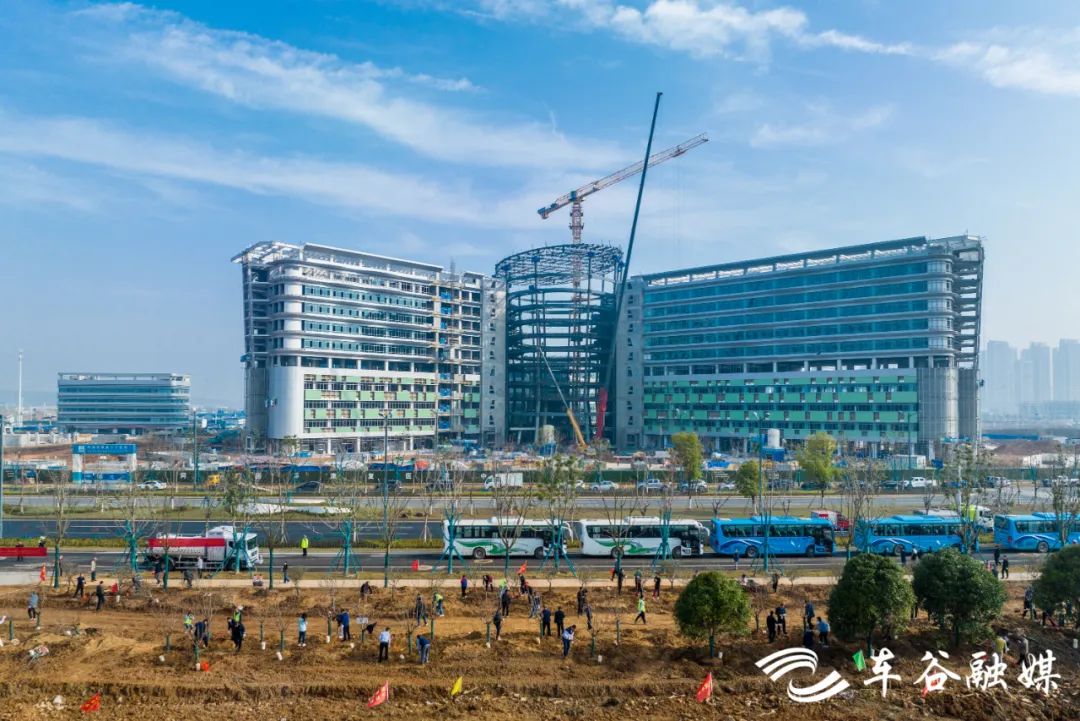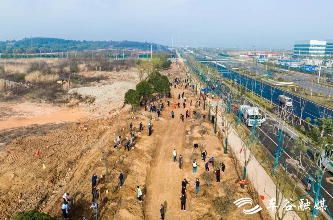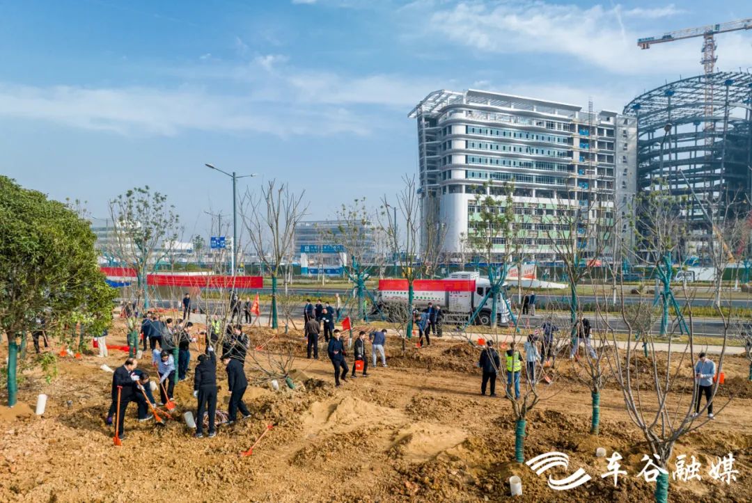 在车谷大道一侧、邻近同济医院车谷院区的一片空地上,刘子清、唐超一行拿着铁锹,与近300名干部职工、志愿者们一起栽苗、培土、浇水,一株株新苗迎风摇曳。