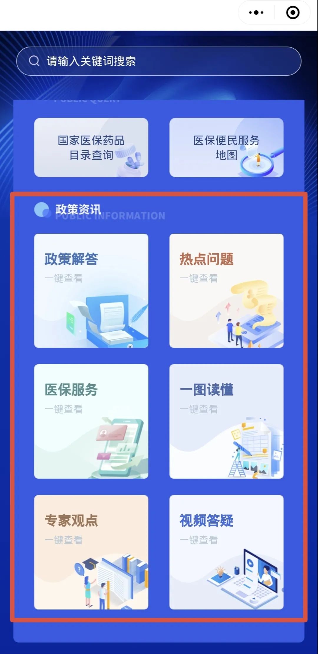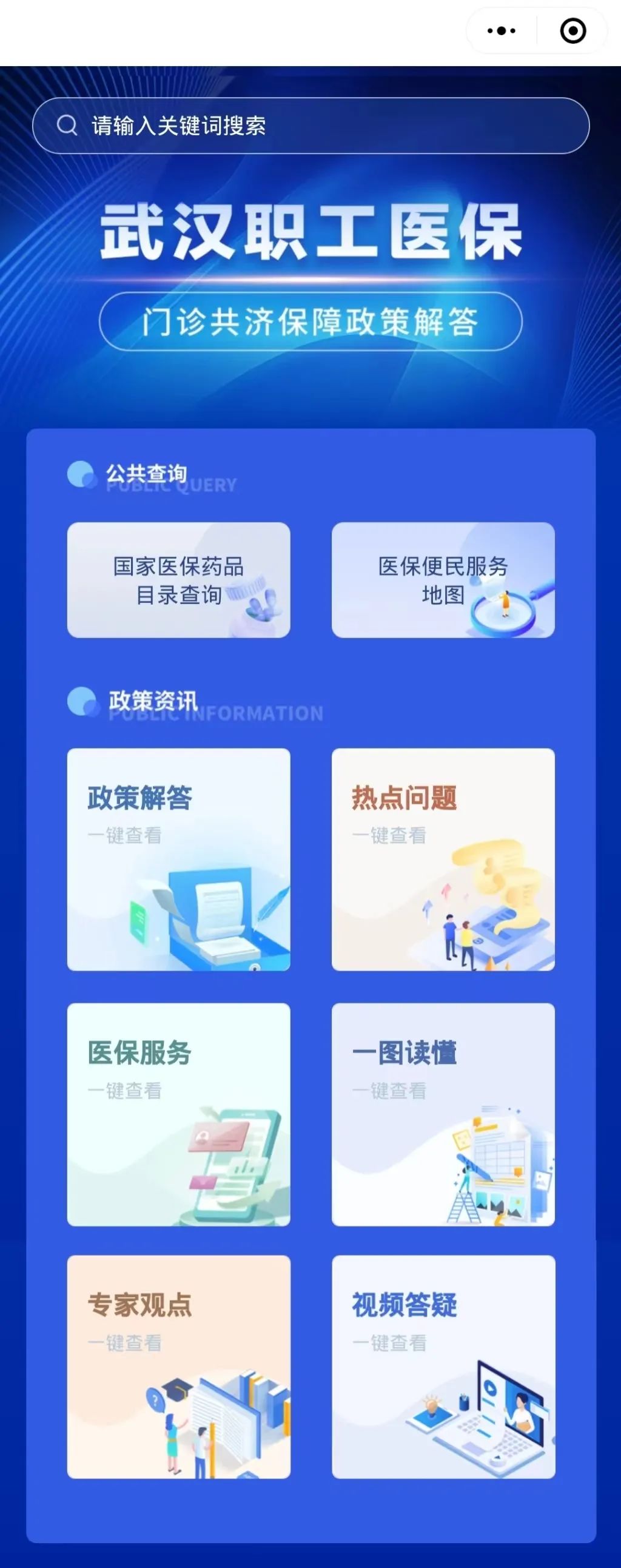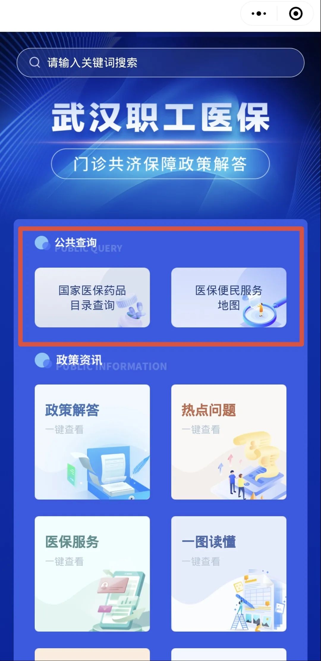 进入微信页面,搜索小程序“武汉医保政策解答”,点击即可进入!