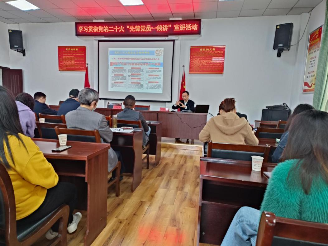车谷融媒3月13日讯 近日,沌阳街南湾社区联合共建单位薛峰综合有限公司,开展“学习贯彻党的二十大 先锋党员一线讲”活动,本次活动邀请武汉市委讲师团成员、武汉商学院优秀共产党员刘宗劲进行授课。