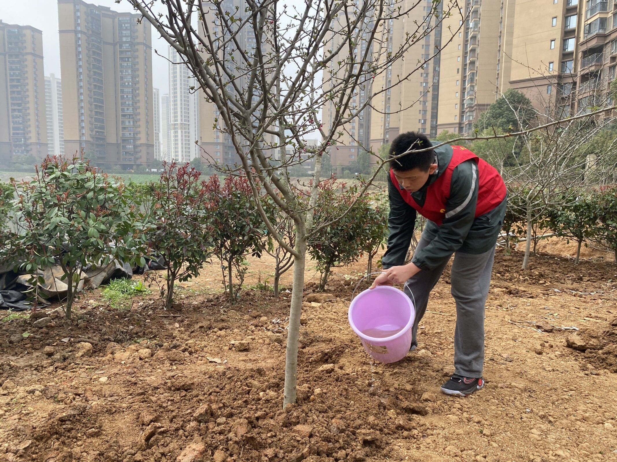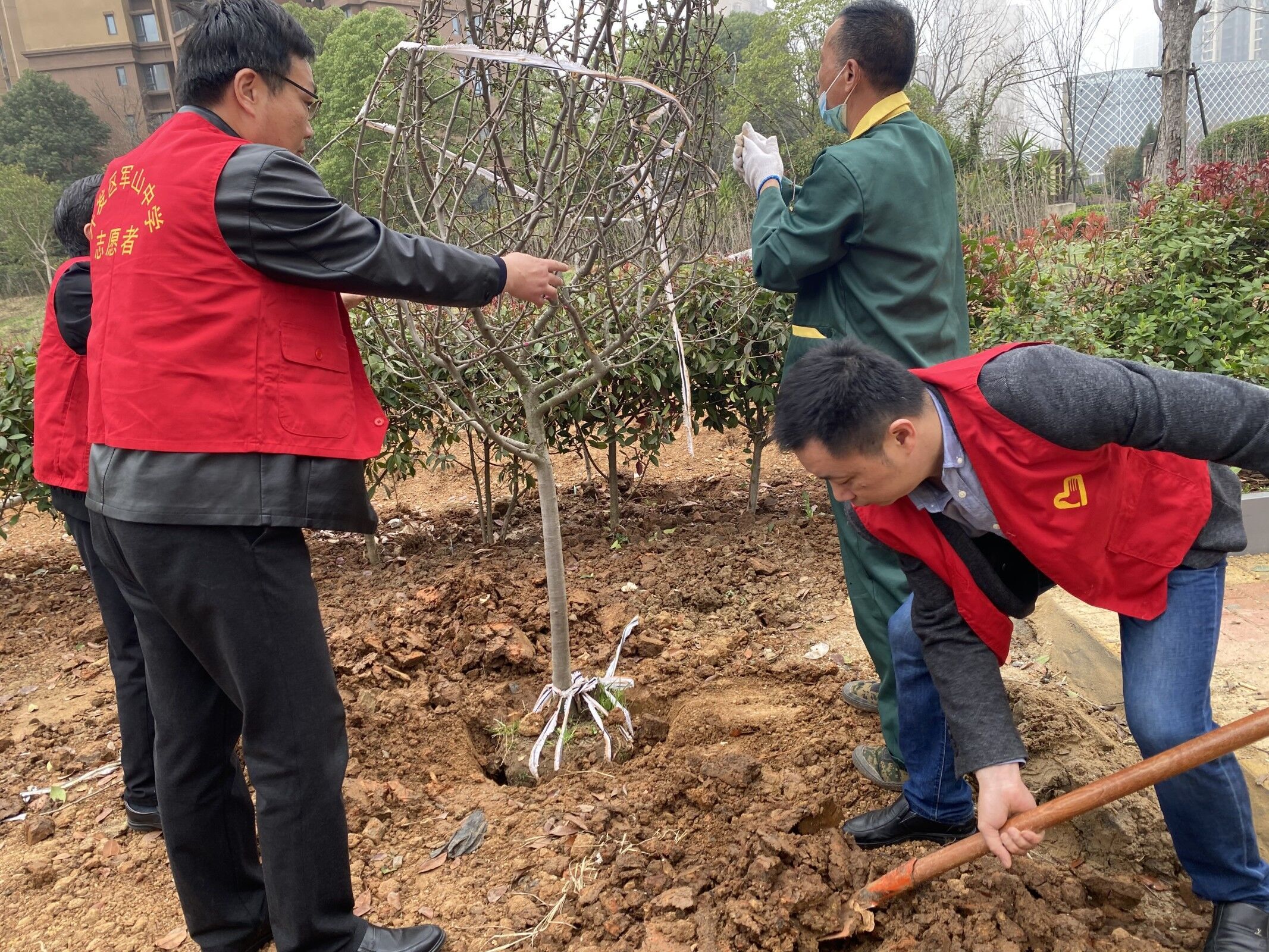 活动现场,军山中学学生志愿者朗诵了诗歌《植树节,植树去》,号召大家积极植树护绿,保护生态环境,朗诵获得阵阵掌声。随后,在社区志愿者的安排下,大家分组投入植树劳动中,满怀热情、干劲十足,扶苗、培土、栽植、松土、浇水……衔接有序、配合默契,活动现场一片热火朝天的劳动景象。