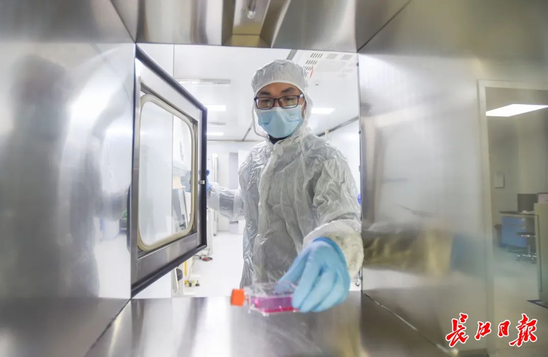 ▲研发工程师正在进行哺乳细胞表达系统转染试验。长江日报记者许魏巍 摄