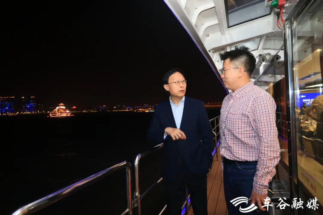 原中国外经贸部副部长、中外企业家联合会联席主席龙永图,商务部欧洲司原司长、中外企业家联合会顾问委员会委员孙永福,中外企业家联合会中国中心主任董斌……此时的君旅号游轮上,嘉宾云集。市委常委、武汉经开区工委书记刘子清,武汉经开区工委副书记、管委会主任唐超与企业家和嘉宾们夜话长江,共谋合作发展。
