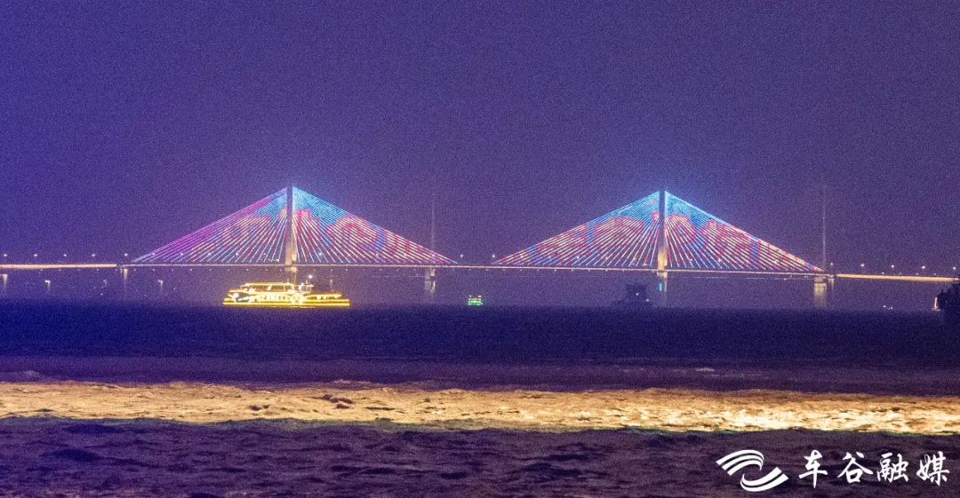 江风拂面。长江大桥、黄鹤楼、绿地金融中心、长江二桥……长江两岸,标志性建筑为中外嘉宾点亮。楼宇,桥梁,在灯光的映射中流光溢彩,美轮美奂。