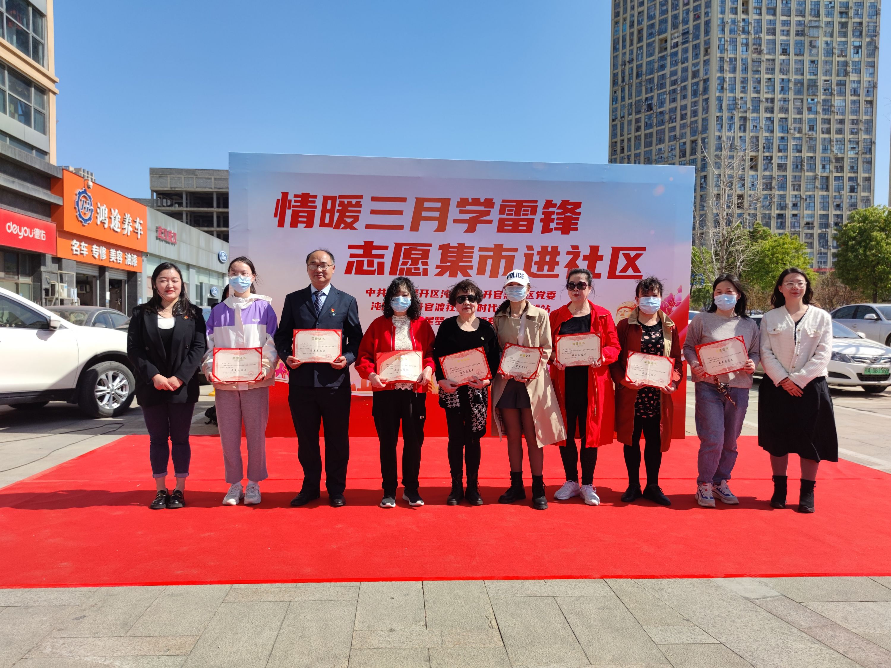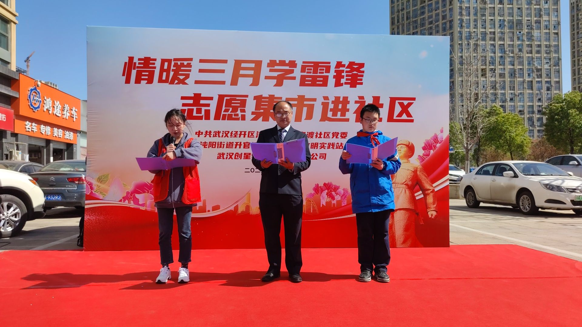 车谷融媒3月16日讯 志愿服务零距离,雷锋精神润民心。3月14日,升官渡社区新时代文明实践站联合共建单位武汉经开区官士墩中学开展“情暖三月学雷锋,志愿集市进社区”主题活动,百余名老、中、青年志愿者大手牵小手,同做追“锋”人。