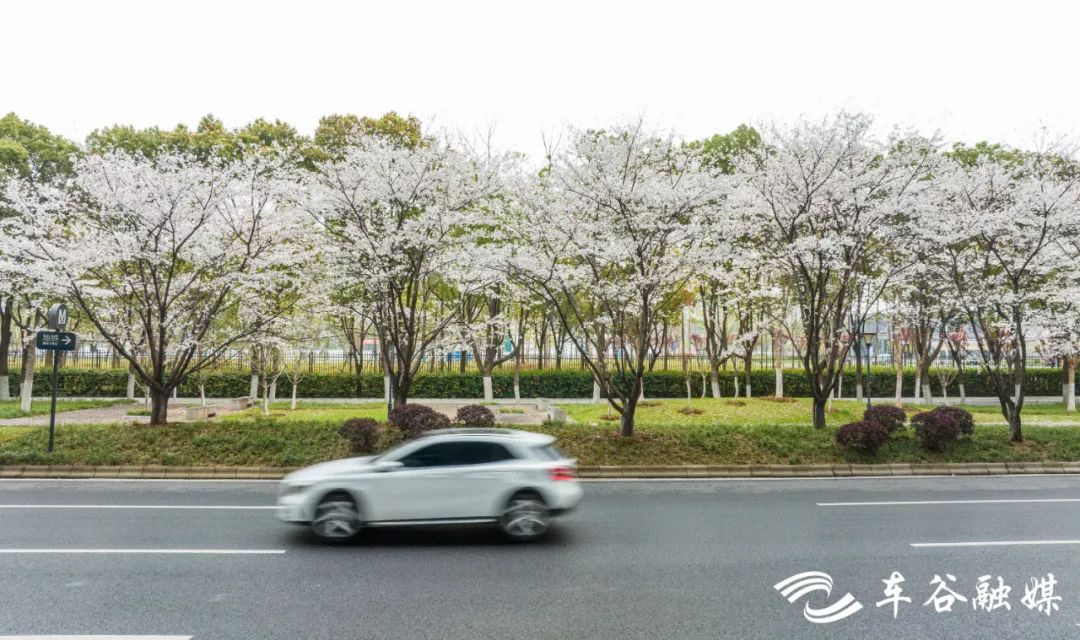 自龙灵山沿车谷大道、东风大道高架进入车城北路,一路繁花相迎,唯美的“樱花车站”更是解锁春日限定浪漫。