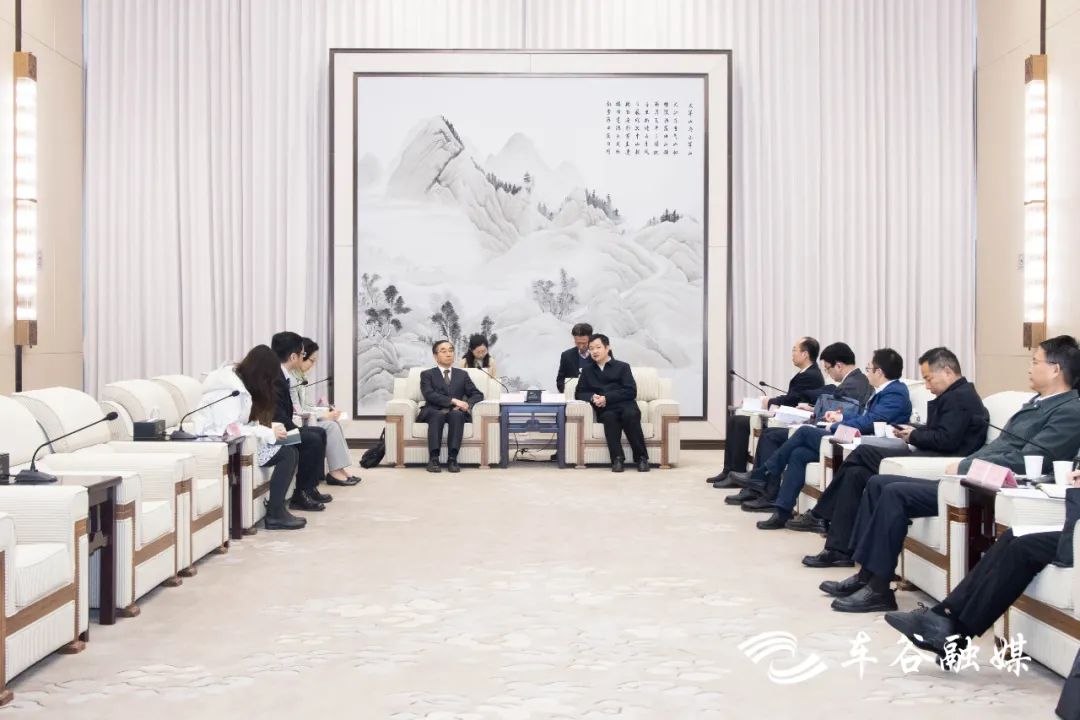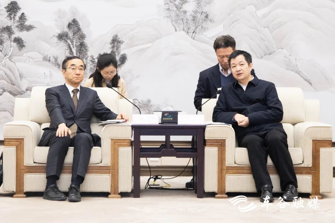 车谷融媒3月23日讯 3月22日上午,日本贸易振兴机构理事长佐佐木伸彦考察武汉经开区。工委副书记、管委会主任唐超会见佐佐木伸彦一行,双方就促进友好往来、加强多领域经贸合作进行深入交流。